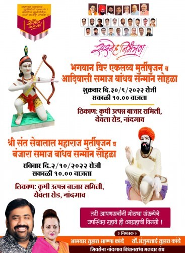 आमदार सुहास आण्णा कांदे यांच्या स्वखर्चातून भगवान वीर एकलव्य तसेच संत श्री सेवालाल महाराज यांची भव्य आकर्षक संगमरवरी मूर्ती प्रत्येक तांडा आणि वस्ती वर भेट दिली जाणार आहे.