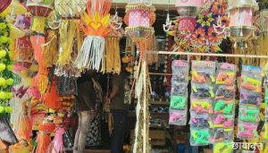 दर वर्षी दिवाळी सणामध्ये प्रत्येक नागरिक हे आपल्या परिवारासह बाजार पेठेमध्ये खरेदी करत असतात.यासाठी बाजारामध्ये मोठी गर्दी होत असते, यंदाच्या वर्षी देखील अनेक व्यापाऱ्यांनी दिवाळी सणासाठी मोठी उलाढाल केली असुन बाजारपेठे मध्ये सर्व प्रकारची दुकाने लावण्यात आली आहे. दिपावलीसाठी लागणारे आकाशकंदील , रांगोळी , पणत्या , खाद्य पदार्थ , कपडे , पुजेसाठी लागणाऱ्या साहित्यांची आदी दुकाने बाजारपेठेत लावण्यात आली असुन , ग्राहकांचा मात्र खरेदीसाठी अल्प प्रतिसाद मिळताना दिसत आहे.