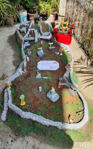 गड निर्मिती करण्यासाठी दगड ,माती, विटा , पोते आदी प्रकारच्या पर्यावरण पुरक वस्तुंचा वापर करण्यात आलेला असुन ,
