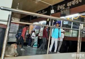 रेल्वे तिकीट कार्यालय परिसरात वानराच्या आगमनाने प्रवाशी भयभीत