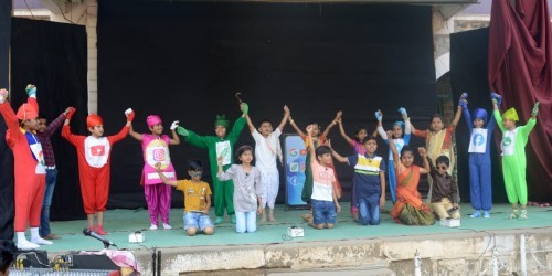 या स्पर्धेत नांदगाव संकुलातील छाजेड विद्यामंदिर शाळेने “आम्ही मुले नव्या युगाची” ही एकांकिका सादर केली.