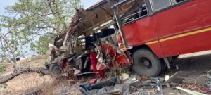 मनमाड आगाराची बस नांदुरीहुन मनमाड कडे परतत असताना देवळा मनमाड रस्त्यावर मतेवाडी शिवारातील गांगुर्डे वस्तीजवळ बस झाडावर आदळली .या अपघातात बसच्या महिला कंडक्टर सारिका युवराज लहिरे व एक प्रवाशाचा दुर्दैवी मृत्यू झाला आहे. या अपघातात बसचा एका बाजूने चक्काचूर झाला आहे. अपघातात महिला बस कंडक्टर जागीच ठार झाली. तर काही प्रवासी गंभीर जखमी झाले आहेत.जखमींना तातडीने रुग्णालयात दाखल करण्यात आले आहे.