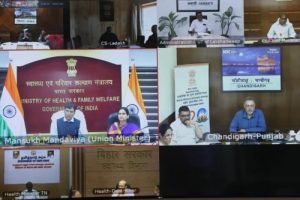 कोविड-19 व्यवस्थापनासाठी सार्वजनिक आरोग्य व्यवस्थेच्या सज्जतेचा आणि राज्यांमधील कोविड-19 प्रतिबंधक लसीकरणाच्या प्रगतीचा आढावा केंद्रीय आरोग्यमंत्री डॉ. मनसुख मांडविया जी यांच्या अध्यक्षतेखाली व केंद्रीय आरोग्य राज्यमंत्री डॉ. भारती पवार यांच्या उपस्थितीत राज्ये आणि केंद्रशासित प्रदेशांच्या आरोग्य मंत्र्यांसोबत आढावा बैठक घेण्यात आली. यावेळी केंद्रीय मंत्री मनसुख मांडविया यांनी राज्यांना सतर्क राहण्याचे सुचित केले आहे.