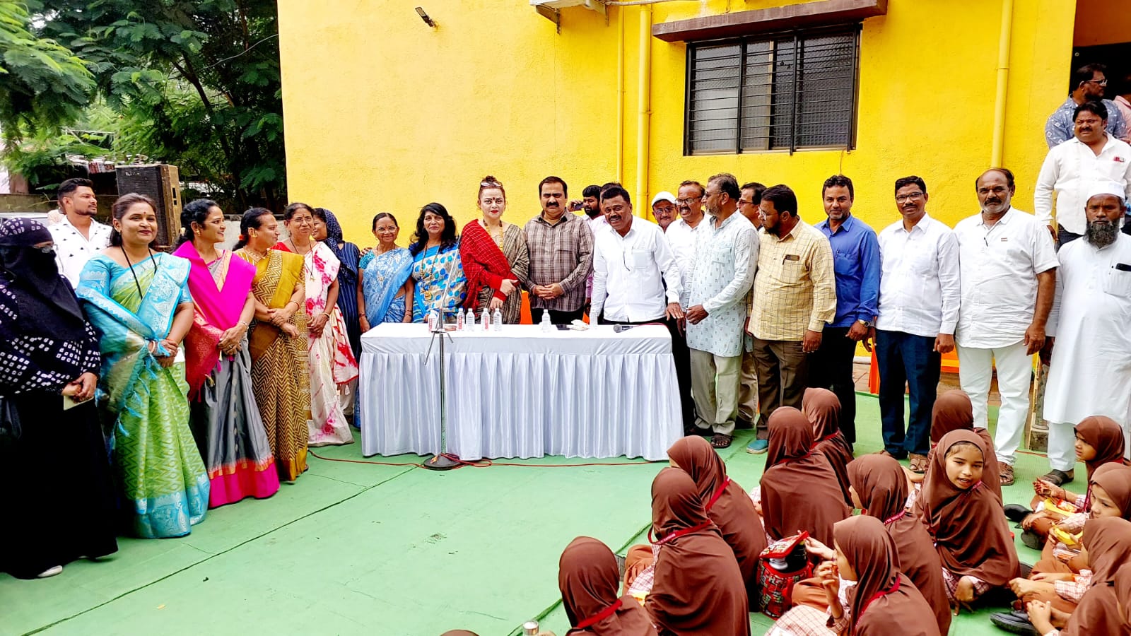 नांदगाव न. प. शाळेतील विद्यार्थ्यांना शिवनेरी विश्राम गृह येथे सौ.अंजुम ताई कांदे यांनी स्वतः सर्व विद्यार्थ्यांना शालेय साहित्याचे वाटप केले.