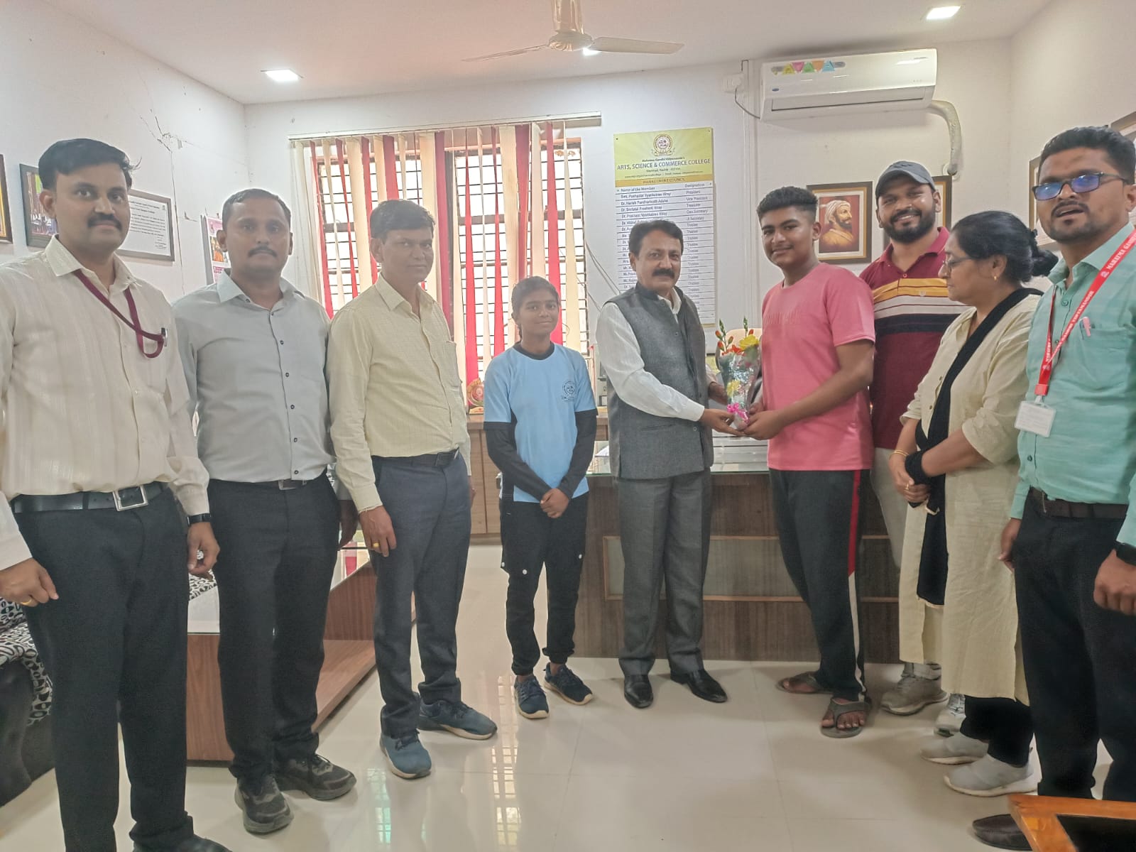 मनमाड : शालेय शिक्षण व क्रीडा विभाग, क्रीडा व युवक सेवा संचलनालय पुणे आयोजित जिल्हा क्रीडा अधिकारी कार्यालय आणि जिल्हा क्रीडा परिषद नाशिक यांच्यातर्फे राबविण्यात आलेल्या शासकीय शालेय नांदगाव तालुकास्तरीय बुद्धिबळ स्पर्धेत महात्मा गांधी विद्यामंदिर संचलित कला विज्ञान व वाणिज्य कनिष्ठ महाविद्यालयाच्या १९ वर्षाखालील गटात कु. ओम नागरे आणि कु प्रिया गायकवाड हिने विजय संपादन केला. मनमाड कनिष्ठ महाविद्यालयातील या खेळाडूंची नाशिक येथे होणाऱ्या जिल्हास्तरीय स्पर्धेसाठी निवड झाली आहे. या यशाबद्दल महाविद्यालयाचे प्राचार्य डॉ.एस. एन. निकम, कुलसचिव श्री समाधान केदारे, वरिष्ठ महाविद्यालयाचे उपप्राचार्य डॉ. बी. एस. देसले, पर्यवेक्षक प्रा. आर. एस. शिंदे, कनिष्ठ महाविद्यालयाच्या उपप्राचार्य सौ.ज्योती पालवे, पर्यवेक्षक प्रा.विठ्ठल फंड,क्रीडा संचालक प्रा.सुहास वराडे, क्रीडा शिक्षक श्री महेंद्र वानखेडे, सर्व प्राध्यापक व प्रशासकीय कर्मचाऱ्यांनी विजय खेळाडूंचे अभिनंदन केले.