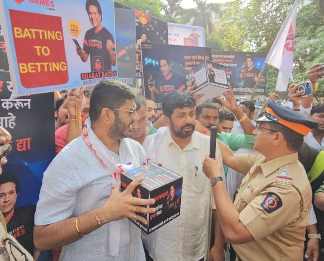 प्रहारचे आमदार बच्चू कडू यांनी मुंबईत काल मास्टर ब्लास्टर सचिन तेंडुलकर याच्या घराबाहेर आंदोलन केले. सचिन ऑनलाईन गेमिंगची जाहीरात करतो आणि याच मुद्द्यावरुन बच्चू कडू यांनी आक्रमक पवित्रा घेतला आहे. बच्चू कडूंसह आंदोलन करणाऱ्या सर्व आंदोलकांना पोलिसांनी ताब्यात घेतलं आहे. दरम्यान, ऑनलाईन गेमिंगची जाहीरात करत असल्याच्या मुद्द्यावरुन बच्चू कडू यांनी यापूर्वीही सचिन तेंडुलकरवर नाराजी व्यक्त केली होती.