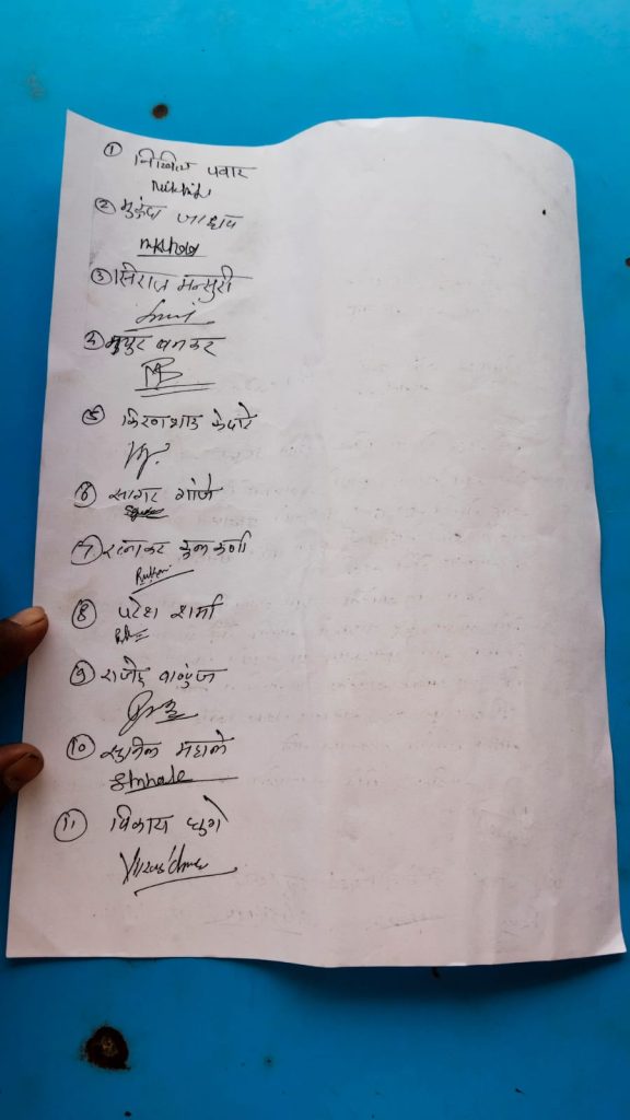 परेश राऊत,अमोल परदेशी,दत्तू मामा शिंदे, गणेश सांगळे,निखिल पवार,मुकुंदा जाधव,सिराज मन्सूरी,मयूर बनकर,किरण शिंदे फिटर,सागर गांजे,रत्नाकर कुलकर्णी,परेश शर्मा,राजेंद्र वाळुंज, सुनील( बाळासाहेब )महाले. विकास घुगे,गंगा कदम, संतोष पवार आदींनी नगर परिषदेला निवेदन देऊन दिला आहे.