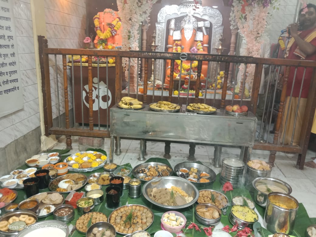 मनमाड – आम्ही परंपरा पाळतो… आम्ही संस्कृती चे रक्षण करतो…. हे ब्रीद घेऊन मनमाड शहरात धार्मिक परंपरेनुसार उत्सव साजरा करणार्या श्री निलमणी गणेश मंदीर सार्वजनिक ट्रस्टतर्फे भाद्रपद महागणेशोत्सव 2023 निमित्ताने मनमाड शहराचे आराध्य दैवत आणि नवसाला पावणारा गणपती म्हणून पंचक्रोशी मध्ये प्रसिद्ध असणाऱ्या श्री नीलमणी मंदिरात सलग 27 व्या वर्षी रविवार दिनांक 24/09/2023 रोजी सकाळी ठीक 09-00 वाजता श्री सत्य विनायक महापूजा तसेच यंदाही सलग 09 व्या वर्षी रविवार दि.24 सप्टेंबर 2023 रोजी सायंकाळी 6.00 वाजता श्री निलमणी महागणपतीस छप्पन महाभोग (महानैवेद्य) अर्पण आला या महत्व पूर्ण धार्मिक कार्यक्रमाचे आयोजनट्रस्ट तर्फे करण्यात आले होते . तरी धार्मिक परंपरा असणार्या छपन्न महाभोग (महानैवेद्य) या कार्यक्रमामध्ये सर्व गणेशभक्तांनी स्वतःच्या घरी तयार केलेले (कांदा लसूण, वांग यांचा वापर नसलेले ) सर्व प्रकारचे नैवेद्य भाविकांनी आणले होते रात्री महाआरती झाले नंतर या महाप्रसादाच्या लाभ घेणे साठी कार्यक्रमास मोठ्या संख्येने गणेश भक्तांनी मोठी गर्दी केली होती कार्यक्रम चे संयोजन श्री निलमणी गणेश मंदीर सार्वजनिक ट्रस्टतर्फे विश्वस्त मंडळाने केले आहे.