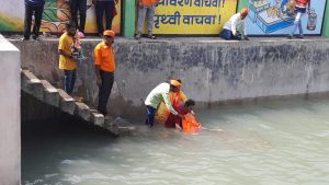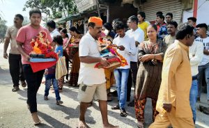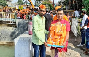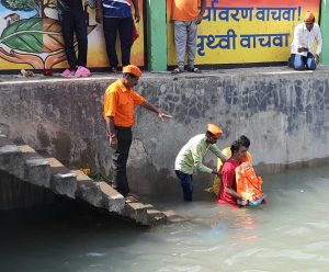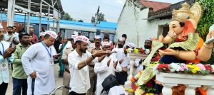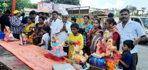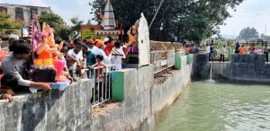मनमाड : योगेश म्हस्के – शहरातील गणेश भक्तांकडुन आपल्या लाडक्या बाप्पाला मोठ्या भक्ती-भावाने निरोप देण्यात आला , घरगुती गणपतीसह मंडळाच्या गणपतीमध्येही उत्साह दिसून येत होता. बाप्पाची दहा दिवस मनोभावे सेवा केल्यानंतर लाडक्या बाप्पाला निरोप देण्यासाठी भक्तांच्या वतीने भक्तिमय वातावरणात गणपती बाप्पांचा विसर्जन सोहळा संपन्न झाला.