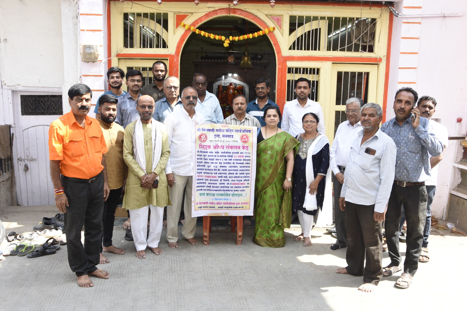मनमाड – मनमाड शहरात धार्मिक, सांस्कृतिक, पर्यावरण ,सामाजिक व शैक्षणिक आरोग्य सेवा क्षेत्रात सन 1997 पासून आम्ही परंपरा पाळतो ….! आम्ही संस्कृती चे रक्षण करतो…! हे ब्रीद वाक्य घेऊन आजपर्यंत अखंडीतपणे 27 वर्षे विविध उपक्रमांद्वारे धार्मिक व सामाजिक आरोग्य सेवाकार्य करणार्या मनमाड शहरात मानाचे स्थान असणार्या श्री निलमणी गणेश मंदीर सार्वजनिक ट्रस्टतर्फे 2017 पासून यंदाही सलग सातवे वर्षी भाद्रपद महा गणेशोत्सव 2023 मध्ये यंदा उत्सवाच्या 27 व्या वर्षानिमित्त गरीब रुग्णांसाठी शिल्लक औषध संकलन केंद्र सुरु करण्यात आले होते. शहरातील नागरिकांना त्यांच्याकडे उपचारानंतर शिल्लक असणारी औषधे की ज्यांची मुदत वैधता (एक्सपायरी डेट) बाकी आहे. ती श्री निलमणी गणेश मंदीरात ठेवण्यात आलेल्या शिल्लक औषध संकलन पेटीमध्ये देण्याचे आवाहन ट्रस्टतर्फे करण्यात आले होते. मनमाड शहरातील व परिसरातील गणेश भक्तांनी व नागरिकांनी या आरोग्य सेवा उपक्रमास भरभरुन प्रतिसाद दिला. आणि 1 महिन्यांच्या कालावधीमध्ये या औषध शिल्लक संकलन पेटीमध्ये सुमारे रु.41,000/- पेक्षा जास्त किंमतीची विक्रमी औषधे की ज्यांची मुदत वैधता शिल्लक आहे अशी संकलीत झाली. 2017 पासून आज पर्यंत सात वर्षात या उपक्रमा द्वारे ट्रस्ट तर्फे 1,00,000/- पेक्षा जास्त किमतीची औषधे संकलित करण्यात आली आहेत ट्रस्टतर्फे या औषधांचे विविध आजारानुसार वर्गीकरण करण्यात आले आणि राष्ट्रीय स्वयंसेवक संघ संचलित सेवा भारती (जनकल्याण समिती) नाशिक यांच्या मार्फत दुर्गम भागात गरीब रुग्णांसाठी मोफत उपचार व औषधे उपलब्ध करुन दिली जातात म्हणून श्री निलमणी गणेश मंदीर ट्रस्टतर्फे यंदा ही सर्व रु.41,000/- पेक्षा किंमतीची संकलीत औषधे सेवा भारती (जनकल्याण समिती )नासिक यांना ट्रस्टचे अध्यक्ष किशोर गुजराथी, सचिव नितीन पांडे, उपाध्यक्ष शेखर पांगुळ , विश्वस्त गोविंद रसाळ, प्रज्ञेश खांदाट यांनी सूपूर्द केली तर सेवा भारती आरोग्य आयाम नाशिक ग्रामीण प्रमुख मुकुंद पाठक,नासिक सेवा भारती सह सचिव सिमा गोसावी जनकल्याण रक्त केंद्र सह कार्यवाह डॉ रश्मी दिवे जनकल्याण केंद्र नासिक माध्यम समन्वयक (जनसपंर्क अधिकारी )सुरेश पिंगळे यांनी ही औषधे सेवा भारती तर्फे स्वीकारली याप्रसंगी सेवा भारती आरोग्य नाशिक केंद्राचे आरोग्य आयाम चे माजी प्रमुख नरहर जोशी यांनी सेवा भारती (जनकल्याण समिती )च्या वतीने निलमणी ट्रस्ट चे ऋण व्यक्त केले श्री निलमणी गणेश मंदीर सार्वजनिक ट्रस्टतर्फे हा गरीब रुग्णांना मोफत औषध उपलब्ध करुन देणारा शिल्लक औषध संकलन केंद्र उपक्रम अखंडित सुरु राहणार असून सोबतच श्री निलमणी ट्रस्ट तर्फे मनमाड शहरात गरीब रुग्णांन साठी विविध आरोग्य सेवा उपलब्ध करणार असल्याचे ट्र