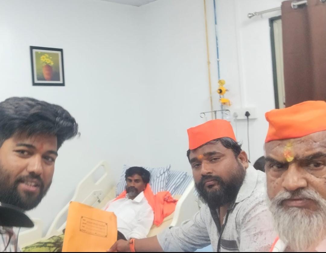 आज छत्रपतीसंभाजी नगर येथे सकल मराठा समाज मनमाड च्या टीम ने गॅलॅकसी हॉस्पिटलमध्ये जाऊन त्यांची भेट घेतली व तब्येतीची चौकशी करून काळजी घ्या लवकर बरे व्हा राज्यातला सर्व मराठा समाज आपल्या पाठीशी उभा आहे असे मनमाड मराठा समाजाच्या वतीने सांगितले.