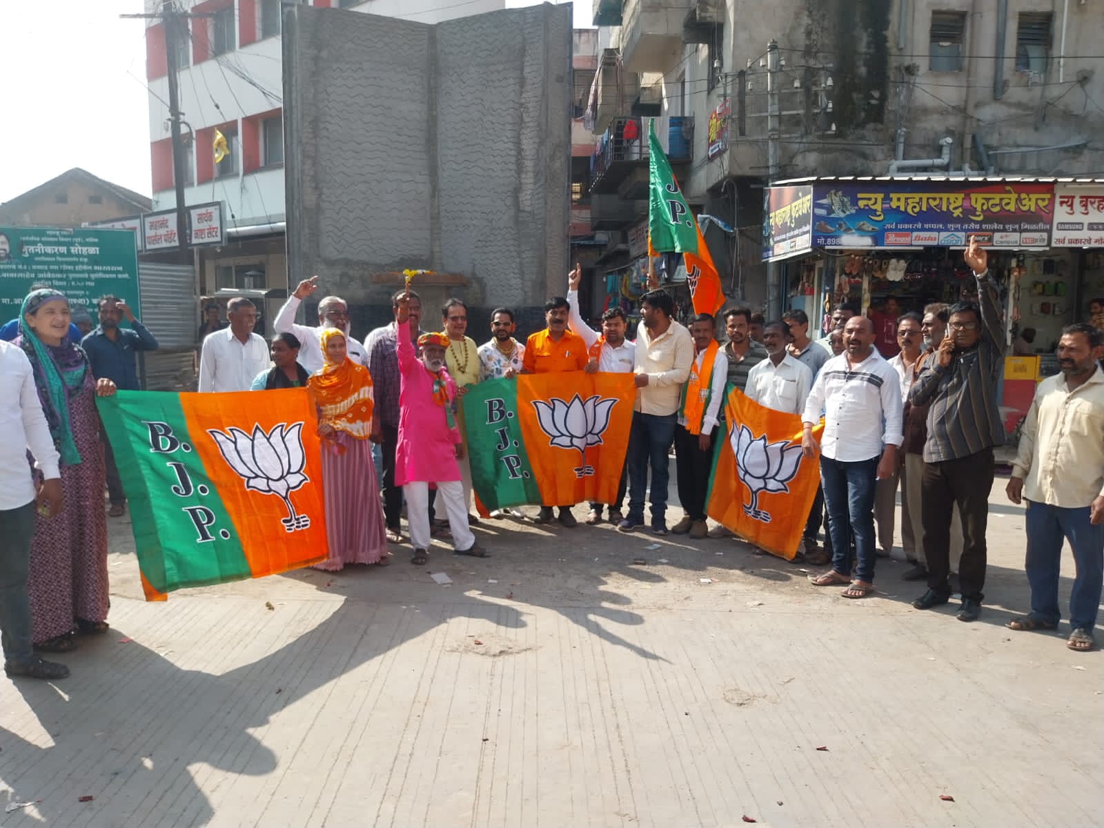 मनमाड – 2024 मध्ये होणाऱ्या लोकसभा निवडणुकीची सेमी फायनल असणाऱ्या पाच राज्याच्या निवडणुकीत भाजपा ने देशाचे पंतप्रधान नरेंद्र मोदी, देशाचे गृहमंत्री आणि अमित शहा, भाजपा चे राष्ट्रीय अध्यक्ष जे.पी.नड्डा यांचे सक्षम नेतृत्वा मध्ये मध्य प्रदेश, राजस्थान, छत्तीसगड या महत्वपूर्ण राज्यात एकहाती पूर्ण बहुमत मिळवले.याचा “विजय उत्सव जल्लोष ” मनमाड मध्ये भारतरत्न डॉ बाबासाहेब आंबेडकर पुतळ्या जवळ मनमाड चे माजी नगरध्यक्ष आणि आरपीआय चे जिल्हा अध्यक्ष राजाभाऊ अहिरे, भाजपा नासिक जिल्हा उपाध्यक्ष नितीन पांडे, भाजपा जिल्हा कार्य सदस्य जयकुमार फुलवाणी, भाजपा अल्पसंख्यांक मोर्चा जिल्हा अध्यक्ष जलील अन्सारी, भाजपा मनमाड शहर अध्यक्ष संदीप नरवडे यांचे नेतृत्वा मध्ये साजरा करण्यात आला या वेळी भारतमाता की जय..!, वंदे मातरम..!, छत्रपती शिवाजी महाराज की..!, भारतरत्न डॉ बाबासाहेब आंबेडकर यांचा विजय असो..! नरेंद्र मोदी तुम आगे बढो देश तुम्हारे साथ हैं..!भाजपा ➖ शिवसेना ➖आरपीआय महायुती चा विजय असो, देश का नेता कैसा हॊ नरेंद्र मोदी जैसा हॊ..! अश्या जोश पूर्ण घोषणा नी संपूर्ण परिसर दुमदूमला यावेळी भाजपा तर्फे जोरदार फटाक्याची आतिष बाजी करण्यात आली तसेच मिठाई वाटप ही करण्यात आले तीन राज्यात भाजपा झालेला विजय हा ऐतिहासिक असून देशातील जनतेने पुन्हा एकदा पंतप्रधान नरेंद्र मोदी चे नेतृत्व निर्विवाद पणे मान्य केले आहे आगामी 2024 च्या निवडणुकीत नरेंद्र मोदी यांच्या नेतृत्व मध्ये आणि केलेल्या लोककल्याणकारी कार्या चे बला वर भाजपा +मित्र पक्ष 400 पेक्षा जास्त जागांवर विजयी होतील असा विश्वास या प्रसंगी भाजपा जिल्हा उपाध्यक्ष नितीन पांडे यांनी व्यक्त केला यावेळी भाजपा चे सरचिटणीस नितीन परदेशी, आनंद काकडे,नितीन अहिरराव भाजपा मन की बात जिल्हा संयोजक दिपक पगारे गौरव ढोले,भाजपा महिला मोर्चा च्या नाजमा अन्सारी, अकबर शहा, सुमेर मिसर,भाजपा दिव्यांग आघाडी चे जिल्हा उपाध्यक्ष सप्टेश चौधरी, सुनीता वानखेडे,कमलेश कलापुरे हिना बागवान राजेंद्र भाबड, मुकेश वेलेनु, धीरज भाबड गोविंद सानप भाजपा जेष्ठ उमाकांत राय, नीलकंठ त्रिभुवन, योगेश चुनियान, भूषण नेरकर, अविनाश पगारे मुकेश पाटील, आशिष चावरिया असिफ सोनू सोनवाला आरपीआय चे गौतमभाऊ वाघ शिवसेना युवा अध्यक्ष योगेश इमले, सचिन दरगुडे आदी भाजपा ➖शिवसेना ➖आरपीआय चे प्रमुख पदाधिकारी व कार्यकर्ते व हितचिंतक नागरिक मोठा संख्येने उपस्थित होते या “विजयउत्सव जल्लोष “कार्यक्रम चे संयोजन जयकुमार फुलवाणी, संदीप नरवडे, नितीन परदेशी, दिपक पगारे यांनी केले.