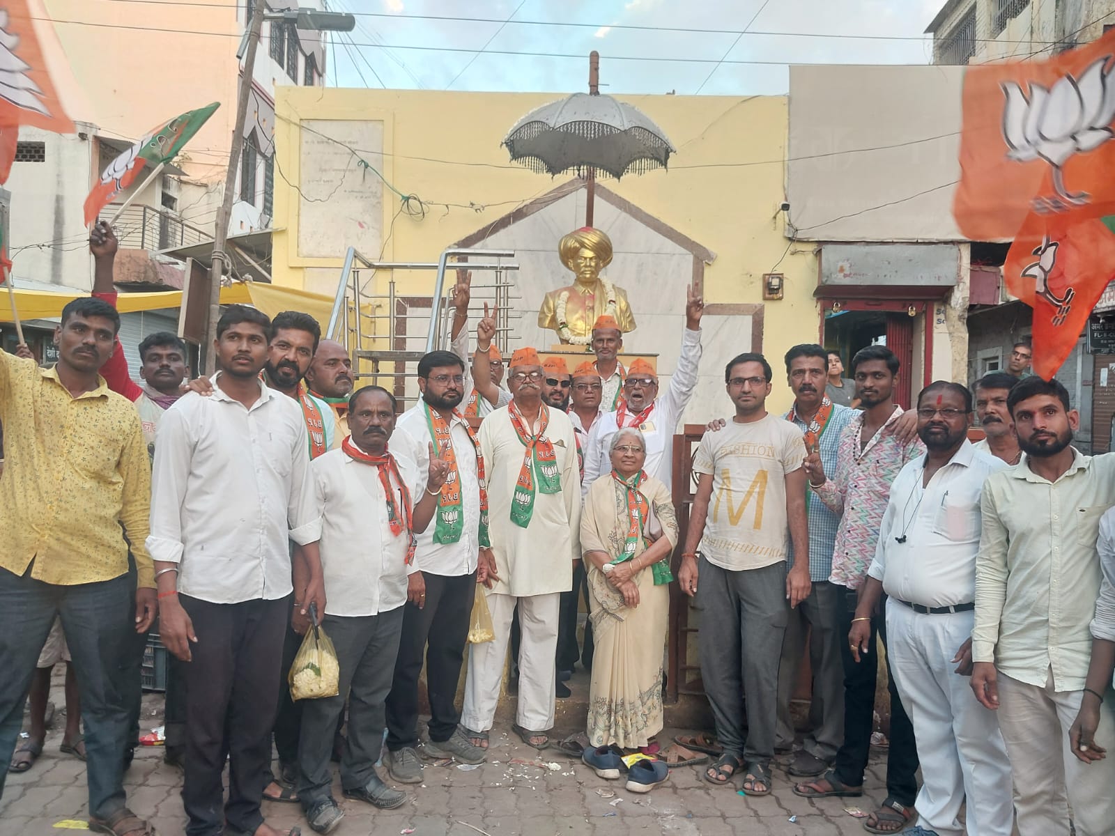 नांदगाव शहरात आज भा.ज.पा तर्फे ढोल ताशांच्या व डीजे च्या गजरात कार्यकर्त्यांनी जल्लोष केला व नांदगाव शहरातील नागरिकांना पेढे भरवुन आनंद व्यक्त करण्यात आला आणि शहरातील छत्रपती शिवाजी महाराज, महात्मा ज्योतिबा फुले, महात्मा गांधी, भारतरत्न डॉ. बाबासाहेब आंबेडकर यांच्या पुतळ्यांना पुष्पहार अर्पण करण्यात आले.