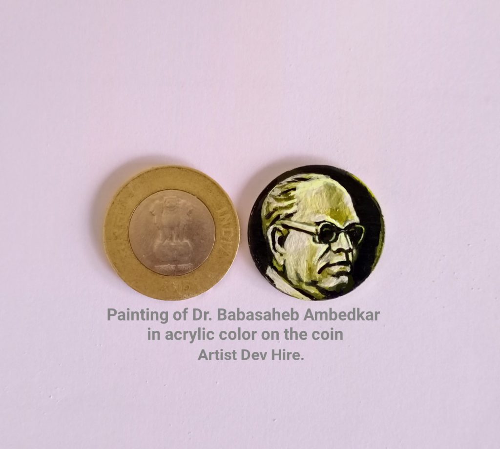 नाण्यावर भारतरत्न डॉ.बाबासाहेब आंबेडकर यांची प्रतिमा रेखाटून महापरिनिर्वाण दिनानिमित्त कलाशिक्षक देव हिरे यांचे महामानवास अनोखे अभिवादन !