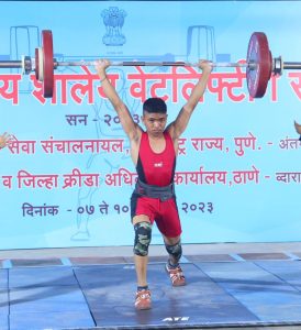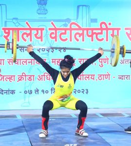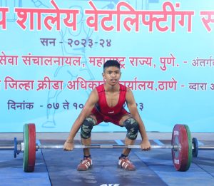क्रीडा व युवक सेवा संचालनालय महाराष्ट्र राज्य जिल्हा क्रीडा अधिकारी कार्यालय ठाणे आयोजित राज्यस्तरीय शालेय १७ व १९ वर्ष मुले मुलींच्या वेटलिफ्टिंग स्पर्धाचं आयोजन ठाणे येथे ७ते १० डिसेंबर दरम्यान करण्यात आले ३९ किलो वजनी गटात महाराष्ट्रातील ३५० खेळाडूंनी सहभागी होत स्पर्धेत चुरस निर्माण केली