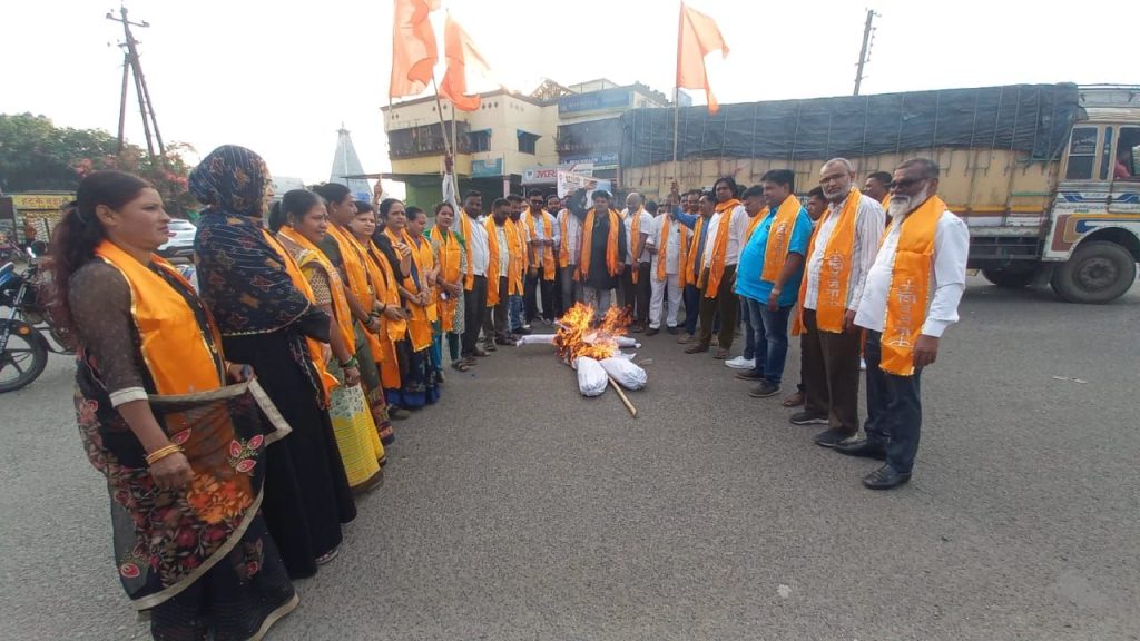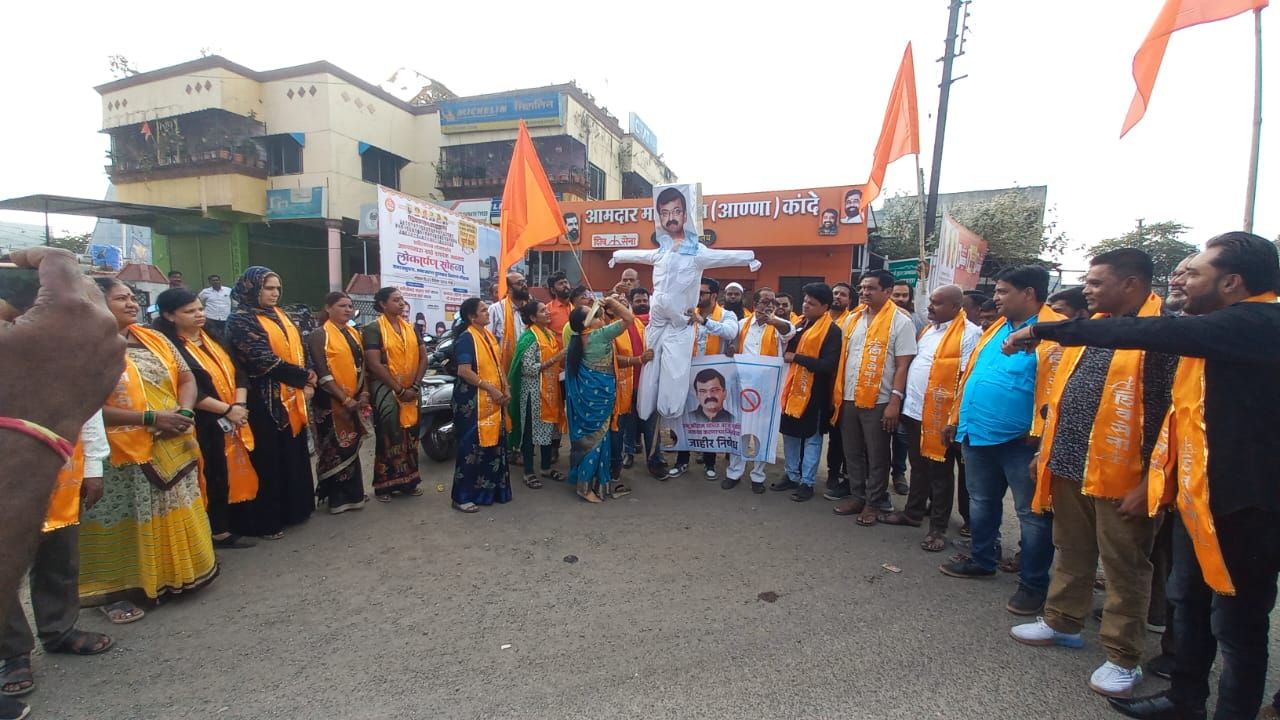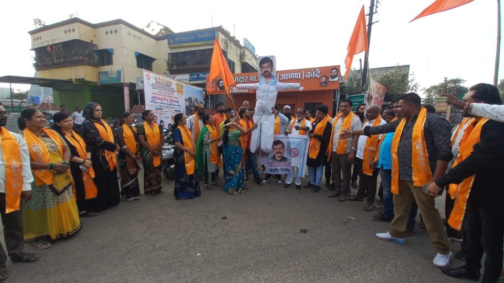 सकल हिंदु समाजाचे आराध्य दैवत प्रभू श्रीरामांविषयी आक्षेपार्ह वादग्रस्त वक्तव्य करून आपल्या राजकीय स्वार्थासाठी व समाजा समाजात तेढ निर्माण करण्याच्या उद्देशाने केलेल्या वक्तव्याचा आणि पवार गटाचे आमदार जितेंद्र आव्हाड यांचा मनमाड शहर शिवसेना तर्फे जाहीर निषेध करण्यात आला.