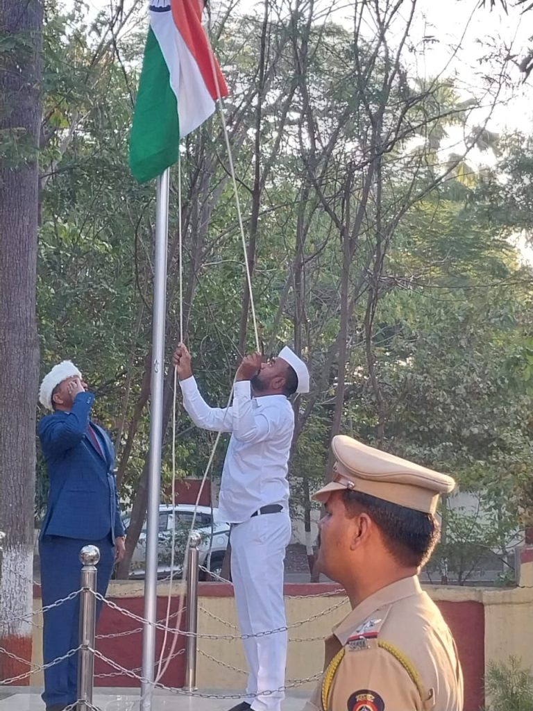 मनमाड – ७५ व्या प्रजासत्ताक दिनानिमित्त मनमाड शहर न्यायालयात मा.न्यायाधिश महेश खराडे यांच्या हस्ते ध्वजवंदन करण्यात आले. ध्वजवंदन झाल्यावर मनमाड वकील संघाच्या वतीने बहारदार देश भक्तिपर गीतांचा कार्यक्रम साजरा करण्यात आला ऍड. रमेश अग्रवाल, एड.चंद्रकांत उबाळे एड. हेमंत सोनवणे, एड. प्रिती सरोदे, ज्योति माळवतकर, रोहन अग्रवाल, प्रेमनारायण कुशवाह व मंगेश कुळकर्णी, ह्यांनी बहारदार देश भक्तिपर व भक्तिमय गीते सादर केली. कार्यक्रमास ज्वाईंट न्यायाधीश श्रीमती मोरे ,मनमाड वकील संघाचे अध्यक्ष ऍड. किशोर सोनवणे, सेक्रेटरी एड. शशिकांत व्यवहारे, खजिनदार एड. सुमित दंडगव्हाळ व वकील संघातील इतर सदस्य व न्यायालयातील सहाय्यक अधिक्षक श्री पाटील व इतर न्यायालयीन कर्मचाऱी मोठ्या संख्येने हजर होते.
