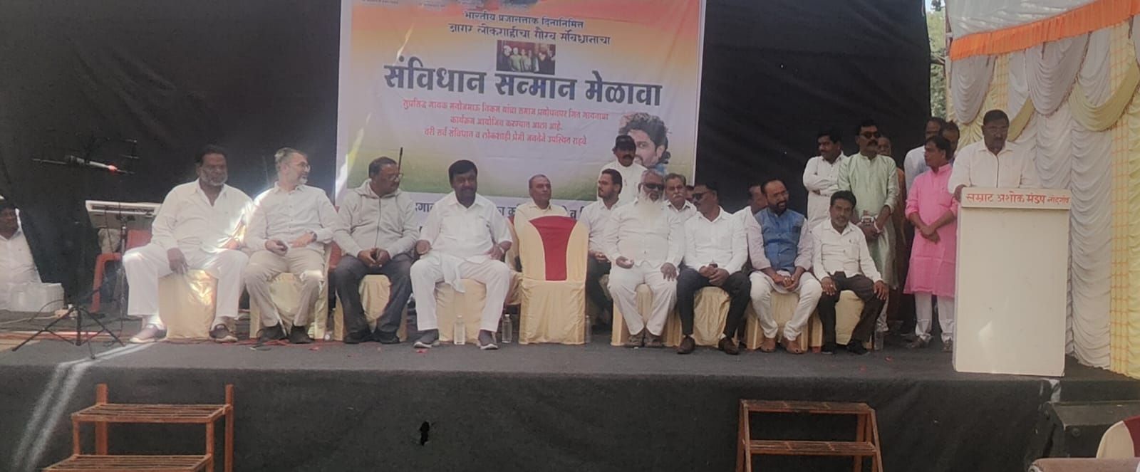 सर्वधर्म समभावाची वागणूक देऊन जनतेच्या समस्या सामाजिक सलोखा निर्माण व्हावा, सर्वांनी शांतता प्रस्थापित करुन काम करावे सर्व राजकीय लोकाना सोबत घेऊन मेळावा घेऊन संविधानाचा जागर करण्याचे काम नांदगाव नगरीत प्रभावीपणे होत आहे त्यासाठी संविधान मेळावे देशभरात घेऊन लोक जागर होणे काळाची गरज आहे असे प्रतिपादन