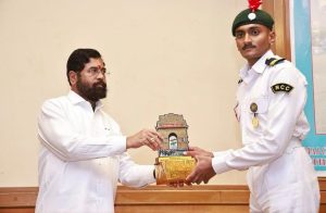प्रजासत्ताकदिनी दिल्लीत झालेल्या संचलनात महाराष्ट्रातून सहभागी झालेल्या एनसीसी विद्यार्थ्यांनी प्रतिष्ठेचा ‘प्रधानमंत्री बॅनर’ सलग तिसऱ्यांदा पटकावल्याबद्दल या छात्रसैनिकांचा सत्कार व या छात्रसैनिकांना ‘प्रधानमंत्री बॅनर’ मुख्यमंत्री शिंदे यांच्या हस्ते सुपुर्द करण्यात आले.