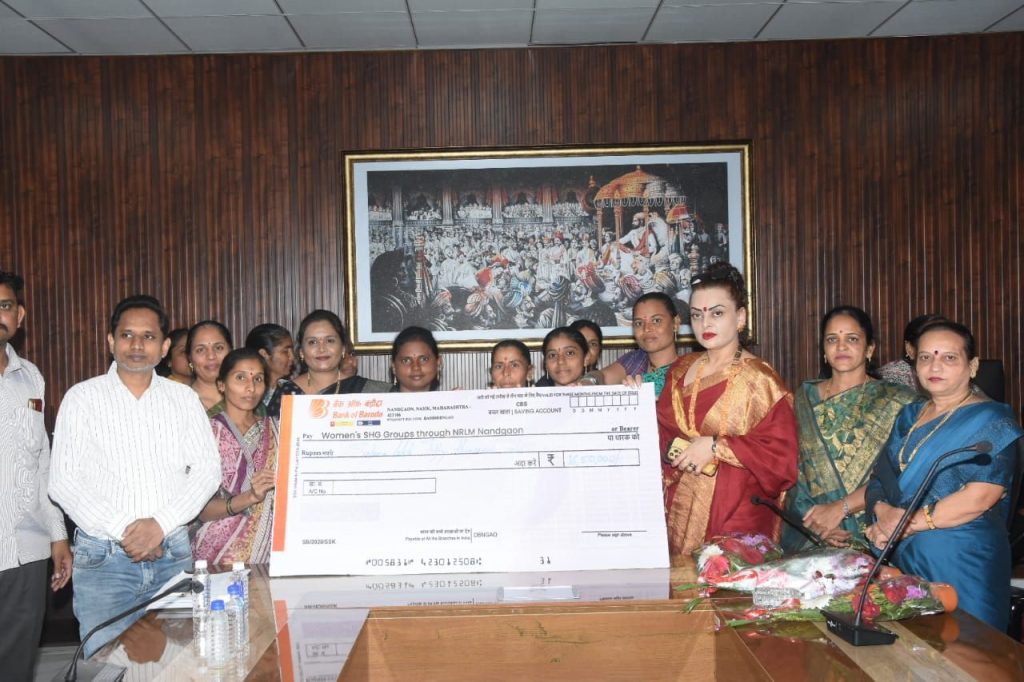 पहिल्या टप्यात किमान २५ हजार महिलांना रोजगार मिळवून देण्याचा आमचा प्रयत्न असेल.असे त्या शेवटी म्हणाल्या.याप्रसंगी तालुक्यातील गिरणानगर येथील ६ बचत गट तर लोहशिंगवे येथील ५ महिला बचत गटांना बँक ऑफ बडोदा कडून प्रत्येकी १ लाख ५० हजार असे १६ लाख ५० हजार रुपये कर्जाच्या धनादेशाचे वितरण सौ.अंजुम कांदे यांचे हस्ते करण्यात आले.