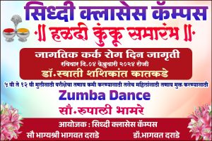 बघा व्हिडिओ-सिद्धी क्लासेस कॅम्पस मध्ये कर्क रोग जागृती – झुंबा डान्स ने आगळा वेगळा ठरला हळदी कुंकू समारंभ