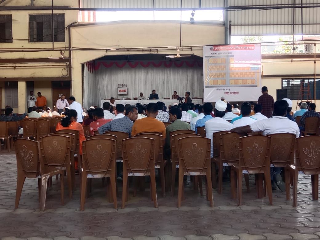 येथील जुन्या महात्मा फुले भाजी मंडईच्या जागी पालिकेने शॉपिंग सेंटर बांधले आहे. शॉपिंग सेंटरचे काम पूर्ण झाल्यावर मागील वर्षी पालिकेने व्यापारी गाळ्यांची ऑनलाइन जाहीर भाडेकरार लिलाव प्रक्रिया राबविली. ऑनलाइन लिलाव प्रक्रियेत अनेक तांत्रिक अडचणी उद्भवल्याने पालिकेने आपल्या अधिकारांचा वापर करत ही लिलाव प्रक्रिया रद्द केली. पालिकेने घेतलेल्या या निर्णयाच्या विरोधात न्यायालयात याचिकाही दाखल करण्यात आल्या. अखेर न्यायालयाचा निर्णय पालिकेच्या बाजूने आल्यावर मंगळवारी येथील जैन धर्मशाळेत मुख्याधिकारी विवेक धांडे यांच्या मार्गदर्शनाखाली जाहीर भाडेकरार लिलाव प्रक्रिया राबविण्यात आली. यावेळी जिल्हाधिकाऱ्यांचे प्रतिनिधी म्हणून नांदगाव मंडल अधिकारी व पोलिस निरीक्षक प्रीतम चौधरी उपस्थित होते.