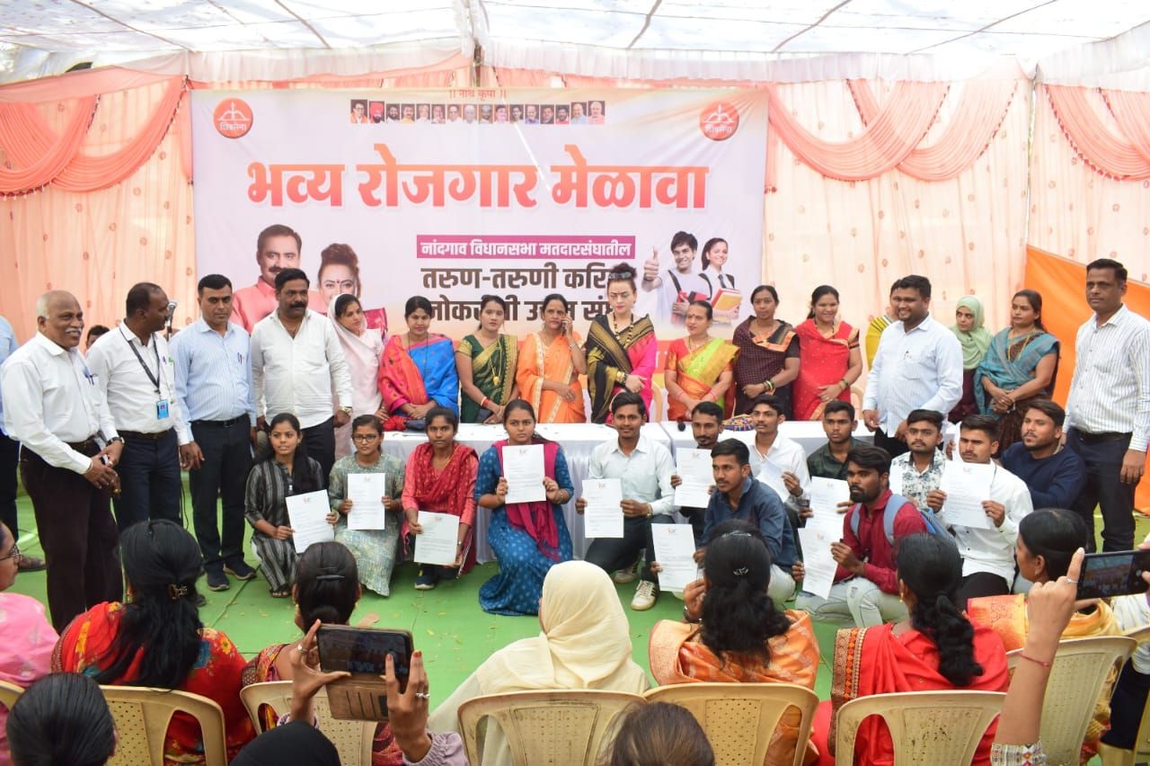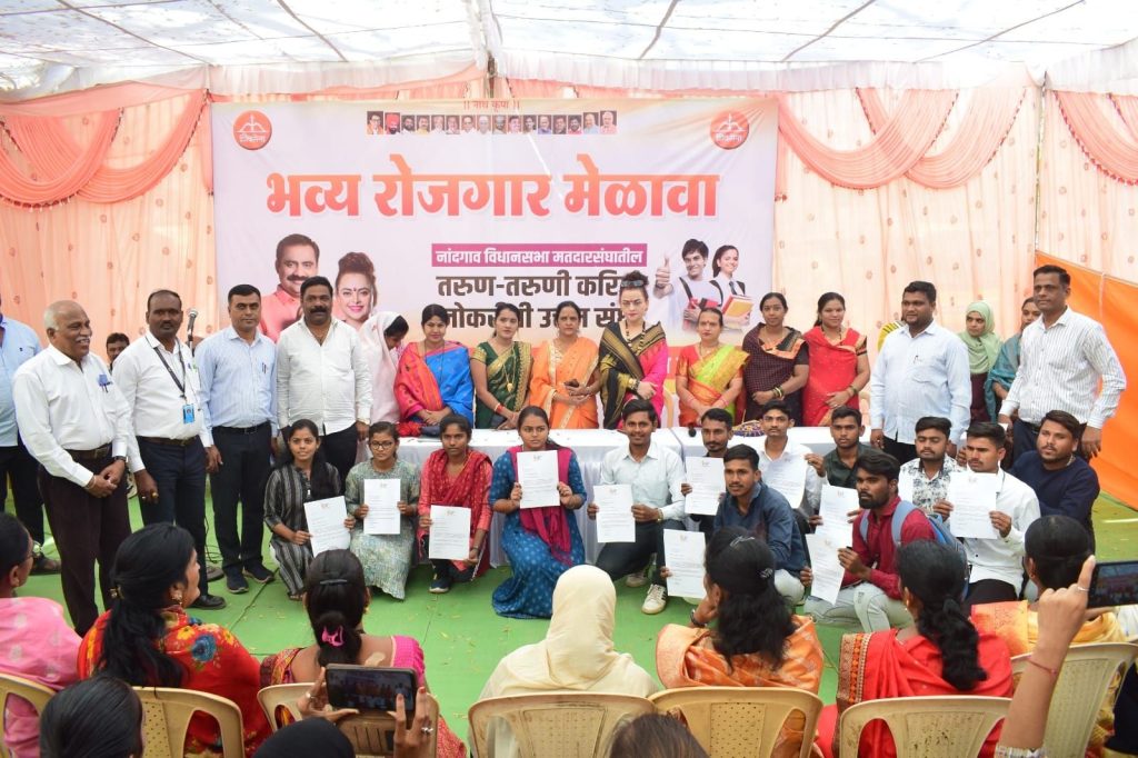 नांदगाव – आमदार सुहास आण्णा कांदे व सौ अंजुमताई कांदे यांच्या संकल्पनेतून नांदगाव विधानसभा मतदारसंघातील तरुण-तरुणींना रोजगार मिळावा या हेतूने नांदगाव शहरातील शिवनेरी या शासकीय विश्रामगृह येथे आज भव्य रोजगार मेळाव्याचे आयोजन करण्यात आले होते.