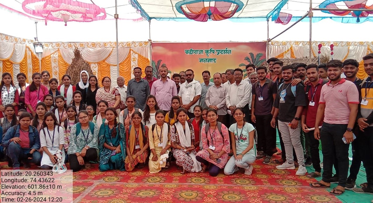 महात्मा गांधी विद्यामंदिर संचलित कला ,विज्ञान व वाणिज्य महाविद्यालय मनमाड मनमाडच्या वाणिज्य विभागाची कृषी उत्पन्न बाजार समिती मनमाड, आयोजित ‘ बळीराजा कृषी प्रदर्शनास ‘ महाविद्यालयाचे सन्माननीय प्राचार्य सुभाष निकम सर यांच्या मार्गदर्शनाने संपन्न झाली. कृषी उत्पन्न बाजार समितीचे सभापती मा. दीपकजी चंद्रकांतजी गोगड यांनी विद्यार्थ्यांना कृषी प्रदर्शना विषयी परिपूर्ण अशी माहिती दिली. मनमाड कृषी उत्पन्न बाजार समितीत प्रथमच असे जिल्हास्तरीय बळीराजा प्रदर्शन आयोजित करण्यात आलेले असून बहुसंख्य लोकांना त्याचा लाभ होत आहे असे गोगड साहेबांनी सांगितले तसेच भविष्यात शेतकरी त्याचे अजून उपक्रम राबवु , असे यावेळी ते बोललेत , त्यांनी कृषी उत्पादने कशा पद्धतीने तयार करण्यात येतात , त्यांचा उपयोग कशा पद्धतीने होतो विषयी सर्व माहिती दिली . वाणिज्य विभागाचे विभाग प्रमुख डॉ.एस.डी.थोरे , डॉ.आरती छाजेड ,डॉ.व्ही.एस नजरधने ,प्रा.सुनिल मुसळे , प्रा.समाधान सूर्यवंशी यांचे या अभ्यास भेटीसाठी मोलाचे सहकार्य लाभले. वाणिज्य विभागाचे विद्यार्थी व विद्यार्थिनी मोठ्या संख्येने उपस्थित होते.
