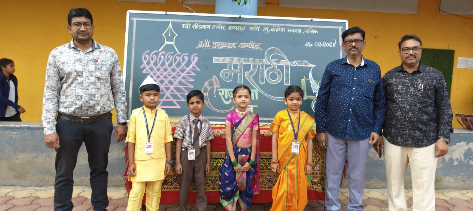कार्यक्रमाचे अध्यक्ष स्थानी शाळेचे मुख्याध्यापक दीपक व्यवहारे. विश्वस्त धनंजय निंभोरकर यांच्या हस्ते कुसुमाग्रज यांच्या प्रतिमेचे पूजन करण्यात आले. कार्यक्रमाचे आयोजन इयत्ता पहिली व इयत्ता सहावीच्या विद्यार्थ्यांनी केले होते. इयत्ता पहिलीचा विहान लिंगायत. ज्ञानराज थोरे. शर्वरी जगताप. राजुल बोथरा. या विद्यार्थ्यांनी “महाराष्ट्राची शान मराठी. “शिवरायांची बोली मराठी. “रयतेचा विश्वास मराठी. “लाखोंचा स्वाभिमान मराठी. मुखामुखातील अमृतवाणी मराठी हीच आपली निशाणी ज्या भाषेत तुकोबांनी लिहिले महान अभंग अशी आपली मराठी भाषा अथांग गर्व आहे मला मी बोलतो मराठी ऐकतो मराठी शब्द कुसुमाग्रजांचे भावून गेले. मराठी मातीचे प्रेम दाखवून गेले. लावला त्यांनी साहित्यला हातभार ठरले ते मराठी भाषेचे शिल्पकार जन्मदिनी त्यांना करूया स्मरण 27 फेब्रुवारी प्रसिद्ध कवी लेखक विष्णू वामन शिरवाडकर म्हणजे कुसुमाग्रज यांचा जन्मदिवस दरवर्षी मराठी भाषा गौरव दिन म्हणून साजरा केला जातो. मराठी भाषा ही भारतामध्ये सर्वात जास्त बोलणाऱ्या भाषेंपैकी तिसरी भाषा आहे मराठी भाषेला अधिक संपन्न बनविण्यासाठी संतांनी खूप परिश्रम घेतले सावता माळी.संत तुकाराम. संत ज्ञानेश्वर. यासारख्या संतांनी मराठी भाषेला जिवंत ठेवले तर शिवाजी महाराजांनी मराठी भाषेचा शब्दकोश तयार करून घेतला होता म्हणूनच “शान माझी मराठी.” मान माझा मराठी. “अभिमान माझा मराठी. “स्वाभिमान माझा मराठी. असे उद्गार इयत्ता पहिलीच्या विद्यार्थ्यांनी आपल्या भाषणात सांगितले. इयत्ता सहावीचा समर परदेशी. याने आपल्या भाषणात “लाभले आम्हास भाग्य बोलतो मराठी जाहलो खरेच धन्य ऐकतो मराठी धर्म पंथ जात एक जाणतो मराठी. एवढ्या जगात माय मानतो मराठी”. आपले विचार प्रकट केले. कार्यक्रमाला शाळेचे प्राचार्य मुकेश मिसर.उपप्राचार्य वैभव कुलकर्णी. उपस्थित होते. कार्यक्रमाच्या यशस्वी करण्यासाठी सौ.राजश्री बनकर विलास कैचे. त्यांचे अनमोल असे मार्गदर्शन विद्यार्थ्यांना लाभले. कार्यक्रमाचे सूत्रसंचालन व आभार प्रदर्शन श्रावणी खैरनार. आराध्या सांगळे यांनी केले.