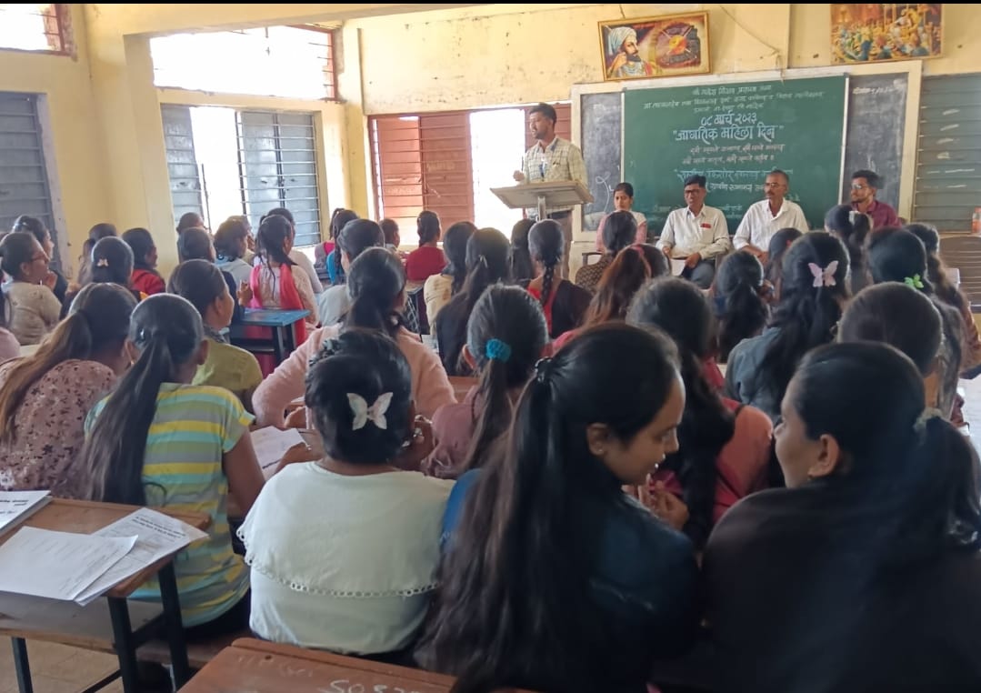 उमराणे:- श्री गणेश शिक्षण प्रसारक मंडळ उमराणे संचलित मा.तात्यासाहेब तथा विश्वासराव देवरे कला, वाणिज्य व विज्ञान महाविद्यालय येथे आंतरराष्ट्रीय महिला दिवसाचे औचित्य साधून “निरोगी आरोग्य व विवाह पूर्व मार्गदर्शन” या विषयावर ग्रामीण रुग्णालय उमराणे येथील श्री प्रसाद जानी यांनी चर्चात्मक मार्गदर्शन केले. यावेळी त्यांनी जोडीदाराची निवड,शारीरिक तपासणी,कौटुंबिक माहिती, आवड – निवड छंद, व्यसनाधीनता, विचारधारा अशा अनेक गोष्टींचे उदाहरणे देवून विद्यार्थी – विद्यार्थिनीच्या शंकांचे निरसन केले. कार्यक्रमाचे अध्यक्ष महाविद्यालयाचे प्रभारी प्राचार्य डॉ कैलास खैरनार आपल्या मनोगतातून प्रत्येक महिला आपल्या आयुष्यात महत्वाची भूमिका बजावत असते, मग ती आपली आई असो, बहीण असो,पत्नी असो,आजी असो प्रत्येक पुरुषामागे एक यशस्वी स्री असते.असे विचार व्यक्त केले.या कार्यक्रमाचे आयोजन प्रा.कु.गवळी ए.के.यांनी केले. आभार प्रा. मवाळ एस.बी.यांनी मानले.कार्यक्रमास सर्व प्राध्यापक, कार्यालयीन प्रशासकीय सेवक, व विद्यार्थिनी मोठ्या संख्येने उपस्थित होते.