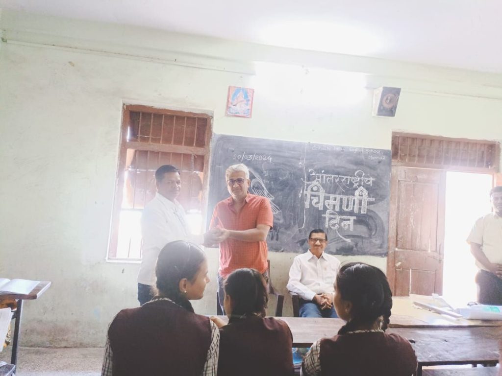 राष्ट्रीय हरित सेने अंतर्गत आंतरराष्ट्रीय चिमणी दिन साजरा करण्यात आला. इयत्ता नववीच्या वर्गातील दिव्या कापडणे, कार्तिकी गवळी, प्रगती पंडित, निवेदिता देवडे, अपेक्षा उगले, गौरी नरोटे, यश गुजर या विद्यार्थ्यांनी आपले मनोगत व्यक्त केले. या कार्यक्रमासाठी संस्थेचे सचिव दिनेश धारवडकर सर, प्रसाद पंचवाघ, शाळेचे मुख्याध्यापक थोरात सर, उप मुख्याध्यापक संदीप देशपांडे सर पर्यवेक्षक व्यवहारे सर, सौ पोद्दार मॅडम,व्ही एस पवार सर उपस्थित होते, विद्यार्थ्यांनी आपल्या मनोगता तुन चिमणी दिनाचे महत्व सांगितले, तसेच विद्यार्थ्यांनी टाकाऊ वस्तु पासून चिमण्यांसाठी दाणे व पाण्याची व्यवस्था केली, देशपांडे सरांनी विद्यार्थ्यांचे कौतुक केले. व्ही.एस. पवार सर यांनी आंतरराष्ट्रीय चिमणी दिन का साजरा केला जातो याबाबत सविस्तर मार्गदर्शन केले कार्यक्रम व्यवस्थित पार पाडण्यासाठी राष्ट्रीय हरित सेनेतील सर्व सर्व सदस्यांनी सहकार्य केले.
