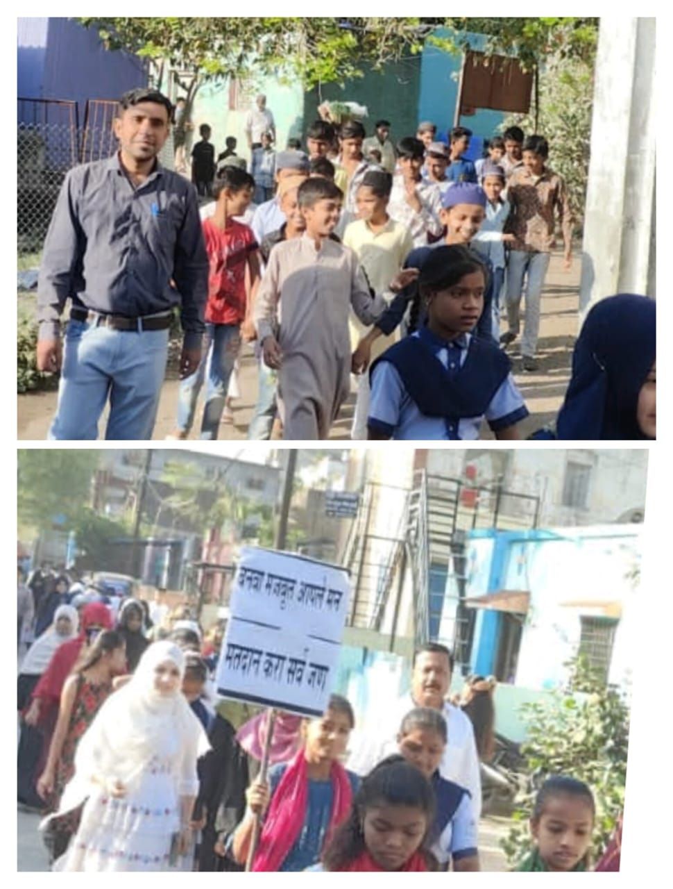 सदर रॅलीचे आयोजन शाळेचे मुख्याध्यापक श्री. शेवाळे भुषण दशरथ व संस्था संचालिका आयशा गाजीयानी मॅडम यांनी केले होते.
