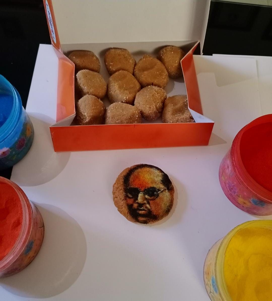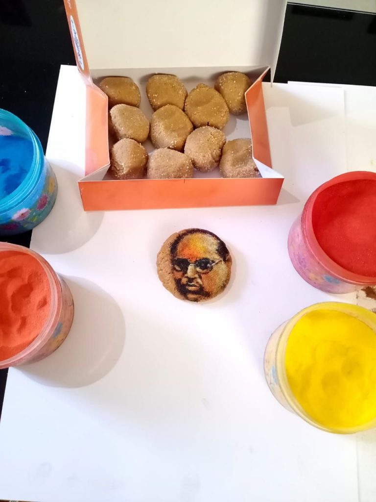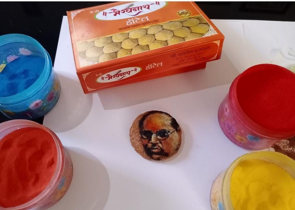 पुण्यश्लोक अहिल्यादेवी होळकर यांच्या पदस्पर्शाने पावन झालेल्या चांदवड नगरीत चांदवडी रुपय्या चा प्रसिद्ध ऐतिहासिक वारसा आहे.डोंगर रांगांमध्ये वसलेले हे ऐतिहासिक चांदवड शहर दुग्धव्यवसाय व खव्या साठी ही प्रसिद्ध आहे आणि याच खव्यापासून चांदवडी पेढा तय्यार होतो हा पेढा सर्वदूर आपली गोडी टिकवून आहे. कोणत्याही कार्याची सुरुवात आपण तोंड गोड करून पेढा भरवून करत असतो. डॉ.बाबासाहेब आंबेडकर जयंती निमित्त याच चांदवडी पेढ्यावर डॉ.आंबेडकरांची प्रतिमा रांगोळीच्या सहाय्याने साकारून ही भीम जयंती अधिक गोड व्हावी म्हणून चांदवड,भाटगाव नूतन माध्यमिक विद्यालयाचे प्रसिद्ध कला शिक्षक श्री.देव हिरे यांनी तब्बल 3 तासात रांगोळीच्या वापर करून पेढ्यावर ही पोर्ट्रेट रांगोळी साकारून महामानवास एक आगळे वेगळे अभिवादन केले आहे.
