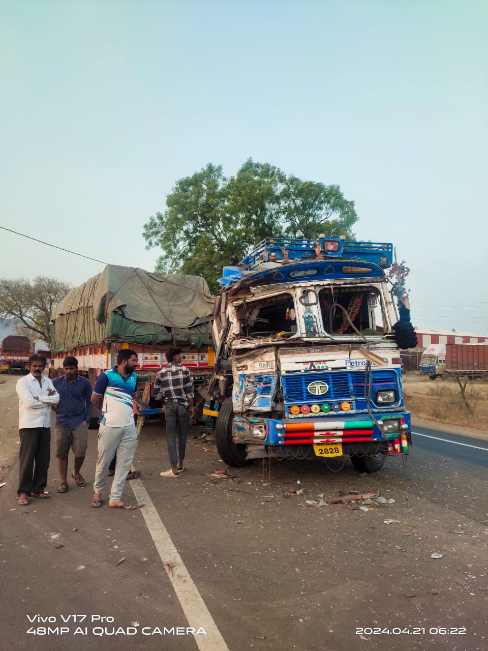 मनमाड जवळ येवला रोड वरील गरुड वस्ती समोर आज पहाटे ४.३० च्या दरम्यान येवल्याहून मनमाड येथे येणाऱ्या टँकर क्रमांक MH13 AX 2828 आणि येवल्याकडे जाणाऱ्या ट्रक क्रमांक TN 52 M 6813 या दोन्ही वाहनांचा अपघात झाला आहे.दोन्ही वाहनांचे चालकाच्या बाजूने धडक झाल्याने वाहनांचे नुकसान झाले असून दोन्ही चालक या अपघातात जखमी झाल्याचे कळते.