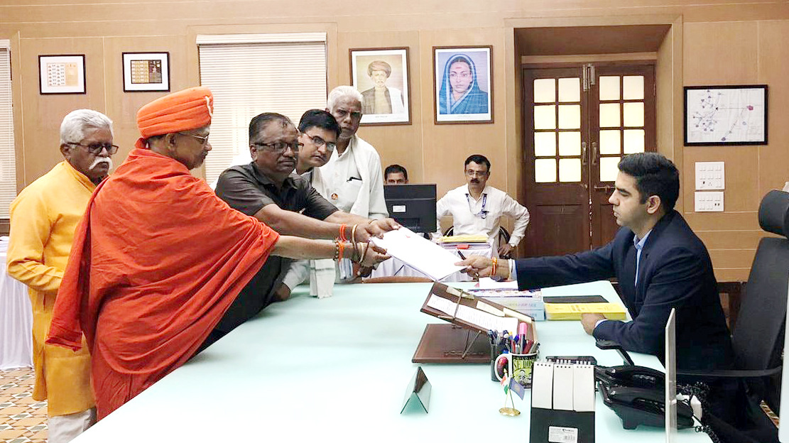 तर २१ नाशिक लोकसभा मतदार संघातून जिल्हाधिकारी तथा निवडणूक निर्णय अधिकारी जलज शर्मा यांच्या दालनात शांतिगिरीजी महाराज (अपक्ष) यांनी नामनिर्देशनपत्र दाखल केले.