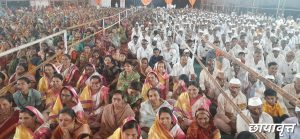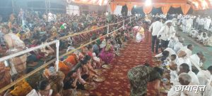 मनमाड : शांतीब्रम्ह एकनाथ महाराज चतुर्थ शतकोत्तर रौप्य महोत्सवा निमित्ताने आयोजित मनमाड येथील महर्षी वाल्मिकी क्रिडा संकुल येथे सुरू असणाऱ्या कीर्तन सोहळ्यात उपस्थित 4 ते 5 हजार भाविकांना अक्षय तृतीया निमित्ताने “खीर-मांड्यांचा” महाप्रसाद देण्यात आला.