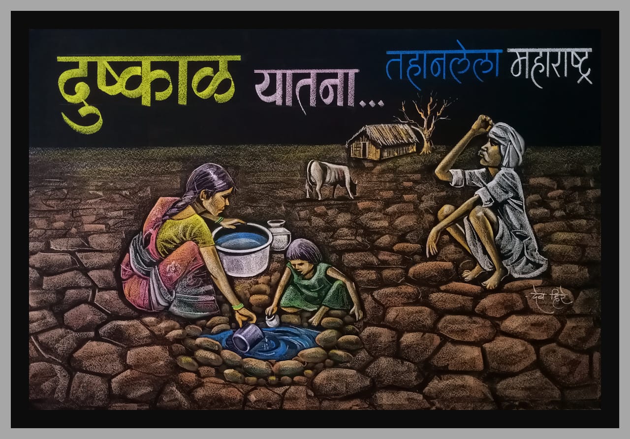 फलक रेखटनातून कला शिक्षकाने प्रतिबिंबित केली दुष्काळाची दाहकता