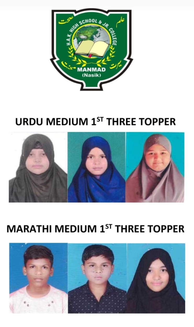 उर्दू माध्यमातून प्रविष्ट झालेले 60 पैकी 57 विद्यार्थी उत्तीर्ण झाले आहे. प्रथम -शेख नौशीन मुश्ताक 81.20 %, द्वितीय -अन्सारी अलीना परवीन मो. खालिद -80.60%, तृतीय – शेख तझीन फैयाज-80.00% यांनी प्रथम तीन क्रमांक मिळविले.
