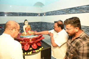 राष्ट्रवादी काँग्रेस पार्टी जनविश्वास सप्ताह साजरा करणे संदर्भात मेळाव्या प्रसंगी नांदगाव नगरीत समीर भुजबळ यांच्या आगमना नंतर मेळावा संपन्न झाल्यानंतर नांदगाव सारनाथ बुद्ध विहार मध्ये त्यांनी भेट दिली त्याप्रसंगी भगवान गौतम बुद्धांना पुष्पहार अर्पण करताना समीर भुजबळ व राष्ट्रवादी काँग्रेसचे जिल्हाध्यक्ष रवींद्र पगार युवक काँग्रेसचे शहर अध्यक्ष गौतम जगताप ज्येष्ठ नेते माजी नगरसेवक अरुण साळवे विलास कोतकर ,अनिल जाधव, विनोद शेलार, राजू लाठे, तानसेन जगताप, आदी उपस्थितीत होते या वेळी भुजबळ यांचे सारनाथ बौध्दविहार मध्ये स्वागत करण्यात आले .