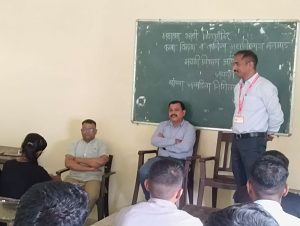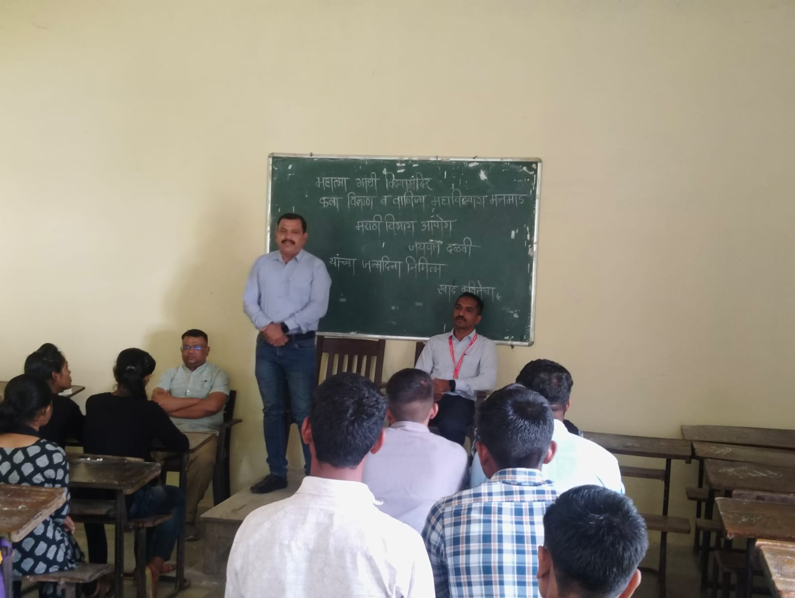 डॉ. व्ही.जी.राठोड यांनी विद्यार्थ्यांना संबोधित करताना. विद्यार्थ्यांनी स्वः कविता, कथा यांचे लेखन करून त्याचे अभिवाचन करावे. जेणेकरून विद्यार्थ्यांचा सर्वांगीण विकास होईल. विद्यार्थ्यांची वैचारिक पातळी वाढावी, यासाठी सतत वाचन, चिंतन,मनन याची आवश्यकता असल्याचे प्रतिपादन त्यांनी केले. कार्यक्रमाचे सूत्रसंचालन व आभार मराठी विभागातील प्रा. सोमनाथ पावडे यांनी केले. सदर कार्यक्रमास विद्यार्थी मोठ्या संख्येने उपस्थित होते.
