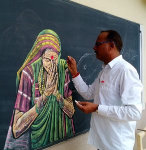 या शाळेतील ‘बैलपोळा’ सणानिमित्त कलाशिक्षक देव हिरे यांनी शाळेच्या दर्शनी फळ्यावर केलेलं अप्रतिम फलक रेखाटनाने प्रचंड धुमाकूळ केला.