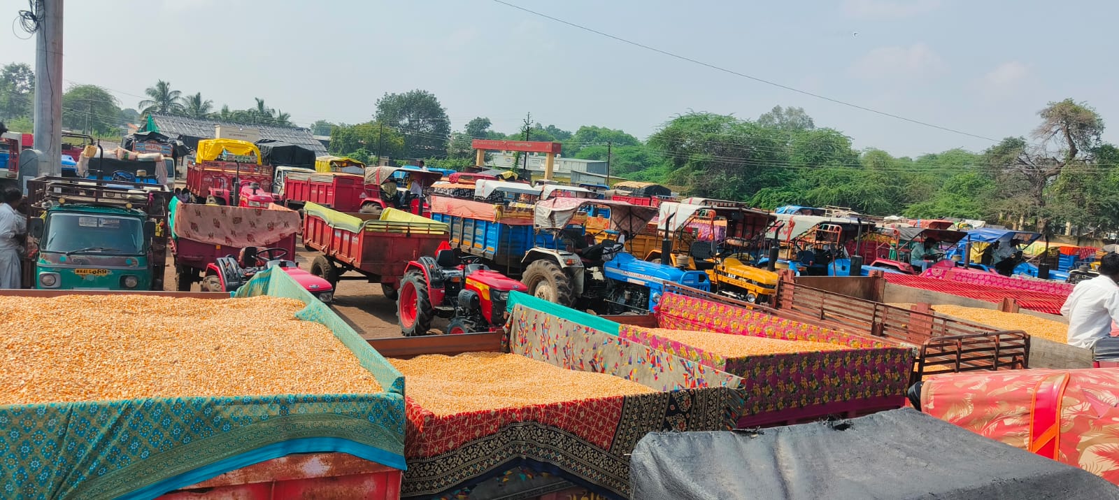 नांदगांव तालुक्यासह चाळीसगांव , वैजापूर , कन्नड या तालुक्यातून नांदगांव बाजार समितीचे नांदगांव , बोलठाण व न्यायडोंगरी यार्डवर मोठ्या प्रमाणात मका आवक येत आहे. परंतू परतीच्या पावसाने सध्या नांदगांव तालुक्यात थैमान घातल्याने शेतकरी वर्गाचे मोठ्या प्रमाणात नुकसान होत आहे. याच परिस्थीती मध्ये दिवाळी सण तोंडावर आल्याने शेतकरी वर्ग बाजार समिती मध्ये मका शेतमाल विक्री करणेसाठी आणत असून बाजार समितीच्या कार्यालय परिसरातच शेतमाल विक्रीचे पेमेंट रोख स्वरूपात अदा केले जात असल्याने शेतकरी वर्ग समाधानी आहे. पावसाचे वातावरणामुळे गेल्या दोन दिवसापासून बोलठाण व न्यायडोंगरी यार्डवरील लिलावाचे कामकाज व्यापारी वर्गाच्या विनंतीवरून बंद होते . तसेच नांदगांव यार्डवर मोठ्या प्रमाणात आवक येत असून वाळलेला मका या शेंतमालास कमीतकमी २००० ते २७४९ असा बाजारभाव मिळाला असून सरासरी बाजारभाव २३५० रूपये मिळाला आहे. तसेच पावसाचे वातावरण असल्याने काही प्रमाणात ओली मका विक्रीस येत आहे. त्यामुळे ओल्या मकाला बाजारभाव १४०० ते १७०० असा बाजारभाव मिळाला आहे.
