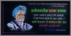 जेष्ठ अर्थतज्ञ ,आर्थिक सुधारणेचे जनक,शांतपणाचे अ ‘सरदार’ नेतृत्व. माजी पंतप्रधान डॉ.मनमोहन सिंग यांचे वयाच्या ९२ व्या वर्षी दुःखद निधन झाले. यांना शालेय दर्शनी फळ्यावर रंगीत खडू माध्यमातील फलक रेखाटनातून भावपूर्ण श्रद्धांजली…!