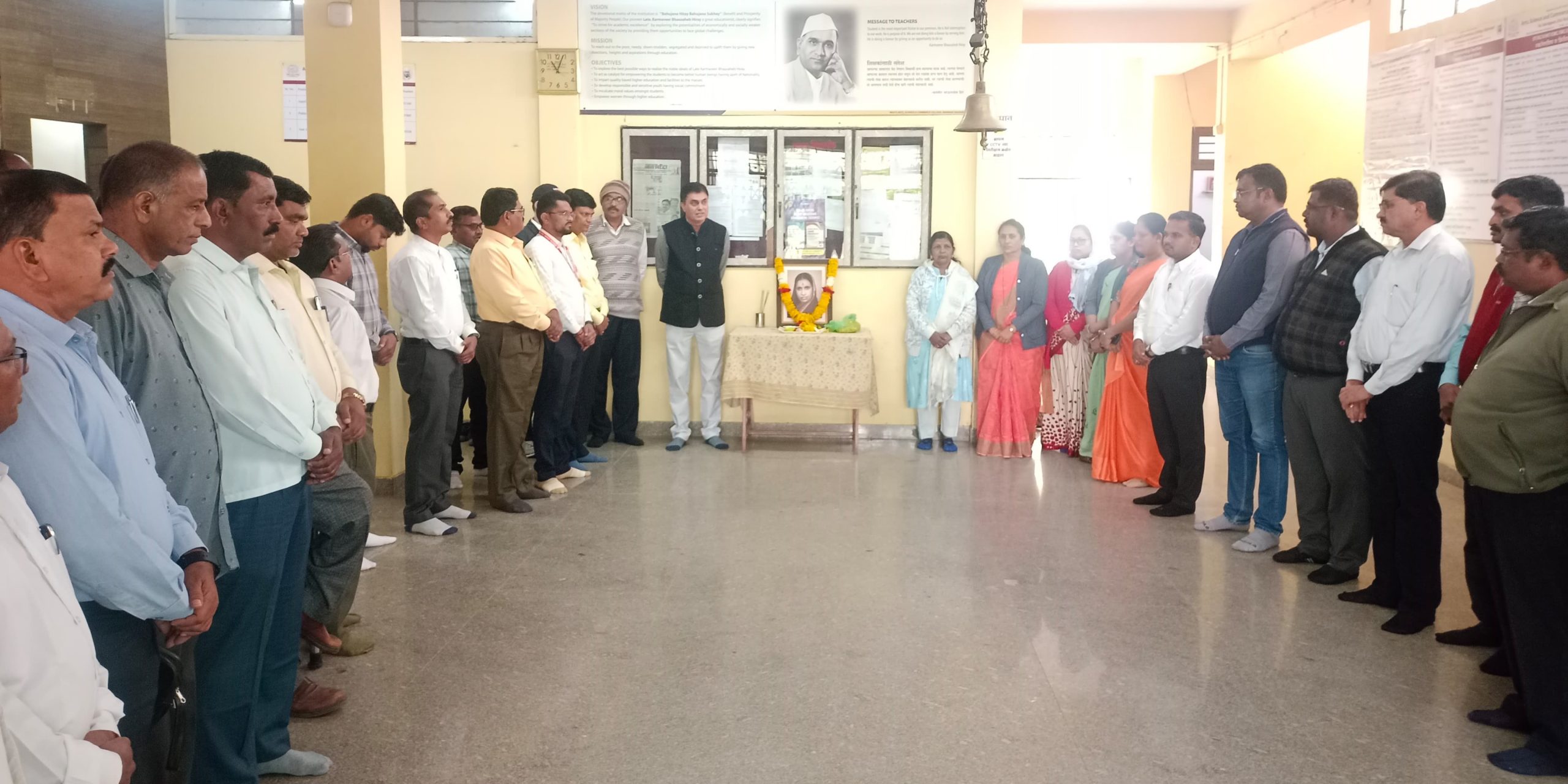 महात्मा गांधी विद्यामंदिर संचलित कला, विज्ञान व वाणिज्य महाविद्यालय मनमाड येथे महाविद्यालयाचे प्राचार्य डॉ. अरूण पाटील यांच्या अध्यक्षतेखाली रेणुका आजी भाऊसाहेब हिरे यांना११७ व्या जयंतीनिमित्त विनम्र अभिवादन करण्यात आले. याप्रसंगी महाविद्यालयाचे प्राचार्य डॉ. अरूण पाटील यांनी आपल्या मनोगतातून आजींच्या आठवणींना उजाळा दिला. आजींना जरी शिक्षण घेता आले नाही तरी अनुभवाच्या शाळेने जगण्याचे तत्वज्ञान शिकविले. संसारातल्या कठीणतल्या कठीण प्रश्नांनी, प्रसंगांनी समाधान दिले. कर्मवीर भाऊसाहेब हिरे यांच्या जीवन प्रवासात रेणुकाआजी हिरे यांनी कर्मवीरांच्या प्रत्येक कार्यात त्यांच्या खांद्याला खांदा लावून त्यांना प्रेरित करण्याचे काम केले.याप्रसंगी महाविद्यालयाचे उपप्राचार्य डॉ. बी. एस. देसले, शैक्षणिक पर्यवेक्षक प्रा. डी बी. सोनवणे, कनिष्ठ महाविद्यालयाचे पर्यवेक्षक श्री विठ्ठल फंड सर्व प्रशासकीय पदाधिकारी, प्राध्यापक, सर्व विभाग प्रमुख, शिक्षक, शिक्षकेतर कर्मचारी उपस्थित होते. कार्यक्रमाचे सूत्रसंचालन प्रा. पी व्ही अहिरे यांनी केले.