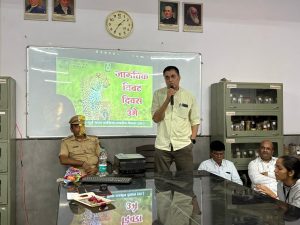 मनमाड: येथील,महात्मा गांधी विद्यामंदिर संचलित कला विज्ञान व वाणिज्य महाविद्यालयाच्या, प्राणिशास्त्र विभाग व येवला येथील वन विभागातर्फे 3 मे हा जागतिक बिबट दिनाचे औचित्य व मनमाड शहरपरिसरातील सद्यपरिस्थीला अनुसरून करण्यात आले.सदर कार्यक्रमात,मांजर कुळातील बिबट हा प्राण्याचे सध्यामानवी वस्त्यांकडे धाव घेण्याचे प्रमाण वाढले आहे. बिबट व इतर वन्यप्राणी यांच्या जीवनमान व वर्तणुकी संधर्भात विद्यार्थ्यांमधे जनजागृती होऊन भविष्यात होणारा मानव व बिबट यांचा संघर्ष टाळावा या साठी ध्वनिचित्रफित व व्याख्यानाच्या माध्यमातून, वन्यप्राण्यांचे नागरी वस्तीतील आकर्षण , कारणे व प्रतिबंध यांची माहिती देण्यात आली.सदर कार्यक्रमासाठी प्रमुख पाहुणे व व्याख्याते म्हणून वनपरिक्षेत्र अधिकारी (आय.एफ.एस.)राहुल घुगे हे उपस्थित होते. सदर कार्यक्रमाचे आयोजन महाविद्यालयाचे प्राचार्य व कार्यक्रमाचे अध्यक्ष डॉ.अरुण पाटील यांच्या मार्गदर्शनाखाली करण्यात आले.प्राचार्य पाटील यांनी आपल्या अध्यक्षीय भाषणातून त्यांच्या मुळगावातील त्यांचे व शेतकरी बांधवांचे बिबट प्राणी संदर्भातील अधिवास,सुरक्षा व उपाययोजना बाबत प्रत्यक्ष अनुभव व्यक्त केले व पुढील वर्षापासून वन्यप्राणी आरोग्यशास्त्र व छायाचित्रण प्रशिक्षण हे नवीन विषय प्राणीशास्त्र विभागाने विद्यार्थ्यांना अभ्यासासाठी उपलब्ध करून येतील असे म्हटले, या कार्यक्रमाचा लाभ शिक्षक व विद्यार्थ्यांना मोठ्या प्रमाणात घेतला. सदर कार्यक्रमाचे प्रास्ताविक प्राणीशास्त्र विभाग प्रमुख प्रा.डॉ जे डी वसईत, यांनी केले तसेच सूत्रसंचालन व आभार प्रदर्शन डॉ.पवनसिंग परदेशी यांनी केले.कार्यक्रमास,वनपाल एस आर माळी, वनरक्षक गोपाल राठोड, वनरक्षक सोनाली वाघ, वनसेवक इरफान सैय्यद, वाहन चालक गणेश चव्हाण, परीक्षा अधिकारी डॉ. रोहित शिंदे,कुलसचिव समाधान केदारे, वन व सर्पमित्र अभय जाधव, कमलेश कुमार, प्रा. गजभिये, डॉ व्ही.जी राठोड, प्रा शरद वाघ यांच्यासह विद्यार्थी , विद्यार्थिनी मोठ्या संख्येने उपस्थित होते.