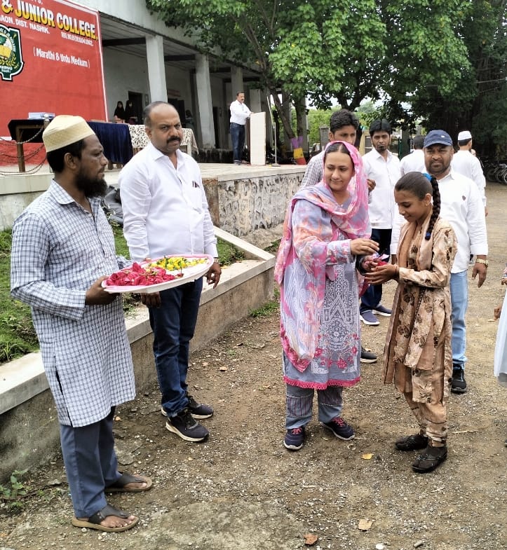 मनमाड :- एच.ए.के.हायस्कूल अँड ज्यु. कॉलेज, मनमाड मध्ये नवीन शैक्षणिक वर्ष 2025-26 च्या पहिल्याच दिवशी विदयार्थ्यांना गुलाबपुष्प,चॉकलेट व समग्र शिक्षा अभियान अंतर्गत मोफत पाठय – पुस्तके (इ. 5 वी ते इ. 8 वी ) देऊन स्वागत केले. उपस्थित पालक वर्ग व संस्थेचे सदस्या आयशा सलीम गाजियानी, शाळेचे मुख्याध्यापक भुषण दशरथ शेवाळे,पर्यवेक्षक अन्सारी शाहिद अख्तर, शेख आरिफ कासम व शिक्षक,शिक्षकेतर कर्मचाऱ्यांच्या हस्ते मोफत पाठ्य पुस्तके व गुलाब पुष्प,चॉकलेट देऊन विदयार्थ्यांचे स्वागत केले.तसेच संस्था व शिक्षक,शिक्षकेतर कर्मचाऱ्यांतर्फे नविन प्रवेशित विदयार्थ्यांना शालेय उपयोगी साहित्य वाटप करण्यात आले. विद्यार्थी मोठया संख्येने शाळेत उपस्थित होते. तसेच इ. 5 वी ते इ. 8 वी च्या विदयार्थ्यांना शालेय पोषण आहार अंतर्गत व्हेज पुलाव सोबत गोड पदार्थ देण्यात आले.मुख्याध्यापक भूषण दशरथ शेवाळे यांनी सर्व विदयार्थी व शिक्षक, शिक्षकेतर कर्मचाऱ्यांना नविन वर्षाच्या शुभेच्छा दिल्या.शाळेतील सर्व शिक्षक, शिक्षकेतर कर्मचाऱ्यांनी कार्यक्रमाचे नियोजन केले होते.संस्थेचे सदस्या आयशा सलीम गाजियानी व मुख्याध्यापक भूषण शेवाळे यांचे मार्गदर्शन लाभले.