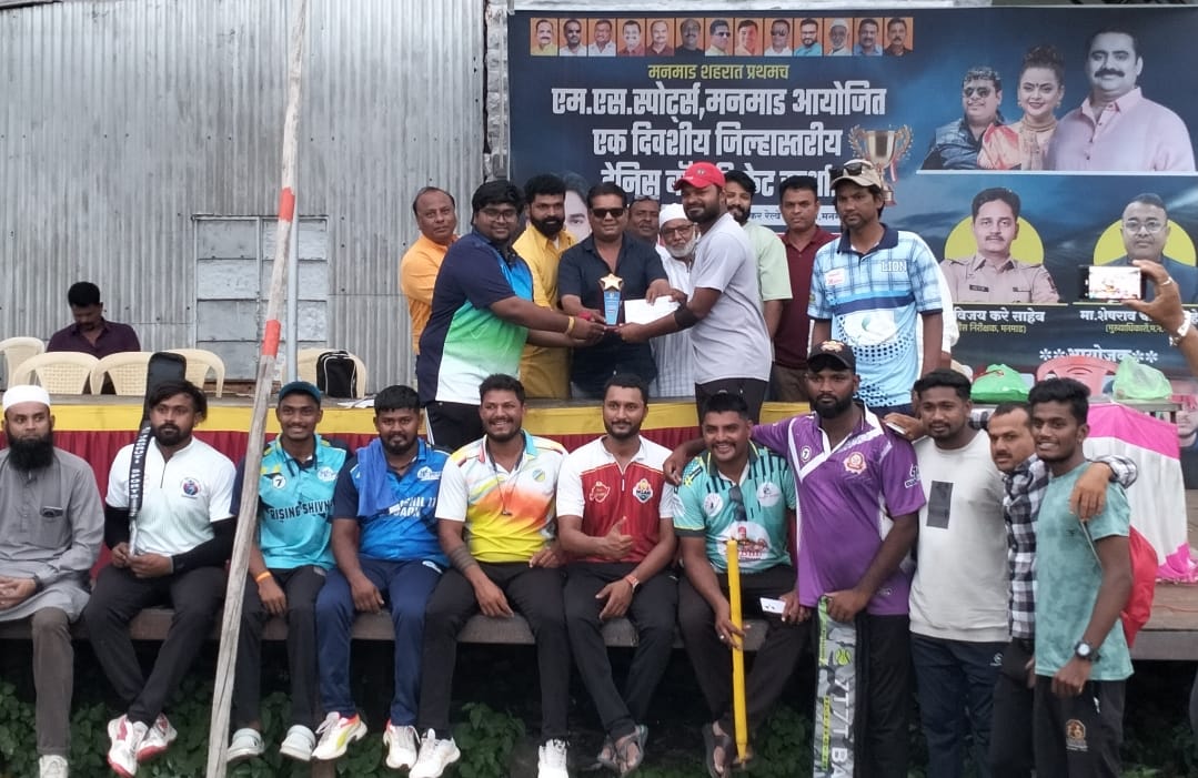 मनमाड:-एम.एस.स्पोर्ट्स,मनमाड आयोजित भारतरत्न डॉ. बाबासाहेब आंबेडकर रेल्वे क्रिडांगण,मनमाड येथे प्रथमच एक दिवशीय जिल्हास्तरीय टेनिस बॉल क्रिकेट स्पर्धा संपन्न झाली. मा.नगराध्यक्ष मा.राजाभाऊ पगारे व मनमाड शिवसेना युवा शहर प्रमुख आसिफभाई शेख यांच्या शुभ हस्ते स्पर्धेची सुरुवात करण्यात आली होती. स्पर्धेत मनमाड च्या चार संघानी तसेच मालेगाव,नांदगाव, येवला, कोपरगाव येथून पाच नामवंत संघ असे एकूण नऊ संघांनी सहभाग घेतला होता.स्पर्धेचे पहिले पारितोषिक स्नेहल पांडे, गोलू संकलेचा, सचिन कराड यांच्यातर्फे रु. 10000/- व द्वितीय पारितोषिक मजीद दादा शेख यांच्या तर्फे रु. 5000/- देण्यात आले होते. तसेच स्पर्धेतील विजेता व उपविजेता संघास रवीभाऊ निकम (सामाजिक व माहिती अधिकार कार्यकर्ता) व मोनीषभाऊ चाबूकस्वार (समाज सेवक) यांच्या तर्फे स्व.रफिकभाई शेख (मा.नगरसेवक) यांच्या स्मरणार्थ आकर्षक,लक्षवेधी चषक देण्यात आले. तसेच स्पर्धेतील मालिकावीर,उत्कृष्ट फलंदाज, उत्कृष्ट गोलंदाज पुरस्कार सेवनटी सेवनटी प्रॉडक्ट चे आकर्षक टी-शर्ट देण्यात आले. विशेष म्हणजे मनमाड क्रिकेट असोसिएशन तर्फे स्पर्धेतील सहभागी सर्व खेळाडूंना नाश्ता ची व्यवस्था करण्यात आली होती.स्पर्धेचा अंतिम सामना महामानव फॉउंडेशन,मालेगाव विरुद्ध एम.एस.इलेव्हन,मनमाड संघामध्ये झाला.हा सामना महामानव फॉउंडेशन, मालेगाव संघाने जिंकून प्रथम पारितोषिक रु. 10000/-व आकर्षक चषकाचा मानकरी ठरला.तसेच उपविजेता एम.एस.इलेव्हन,मनमाड संघास रु. 5000/- व आकर्षक चषक देण्यात आले.तसेच एम. एस.इलेव्हन संघाचा कर्णधार मन्सूफ शाह (मनमाड चा टायगर ) यास मालिकावीर पुरस्कार व नांदगाव संघाचा कर्णधार वैभव जाधव यास उत्कृष्ट फलंदाज पुरस्कार तसेच महामानव फॉउंडेशन,मालेगाव संघाचा खेळाडू कामरान यास उत्कृष्ट गोलंदाज पुरस्कार देण्यात आले. सामने पाहण्यासाठी मनमाड शिवसेना प्रमुख मयुरभाऊ बोरसे,मा.नगराध्यक्ष साईनाथभाऊ गिडगे, मा. नगराध्यक्ष बबलूभाऊ पाटील, फुले,शाहू,आंबेडकर मुस्लिम विचारमंचचे कार्याध्यक्ष तथा संभाजी ब्रिगेड चे नाशिक जिल्हा समन्वयक फिरोजभाई शेख,समाजसेवक मजीदभाई शेख, रवीभाऊ निकम(सामाजिक व माहिती अधिकार कार्यकर्ता) मोनीष भाऊ चाबुकस्वार(समाज सेवक), हबीबभाई शेख (HB),पंकज भाऊ खताळ,डॉ.सुनिल बिडगर,गणेश इंनुल्लू, रेल्वे सिनियर इन्सिट्यूट, मनमाड चे नविन पदाधिकारी, किशोरभाऊ व्यवहारे,महामानव फॉउंडेशन क्रिकेट संघाचे संघमालक आकाश बेडके तसेच मनमाड शहरातील क्रीडा प्रेमी मोठया संख्येने उपस्थित होते. उपस्थित सर्व मान्यवरांचे मनमाड क्रिकेट असोसिएशन तर्फे स्वागत करण्यात आले.मालेगाव येथून आलेले उत्कृष्ट समालोचक शुभम आहिरे यांनी सर्व सामन्यांचे आपल्या गोड 