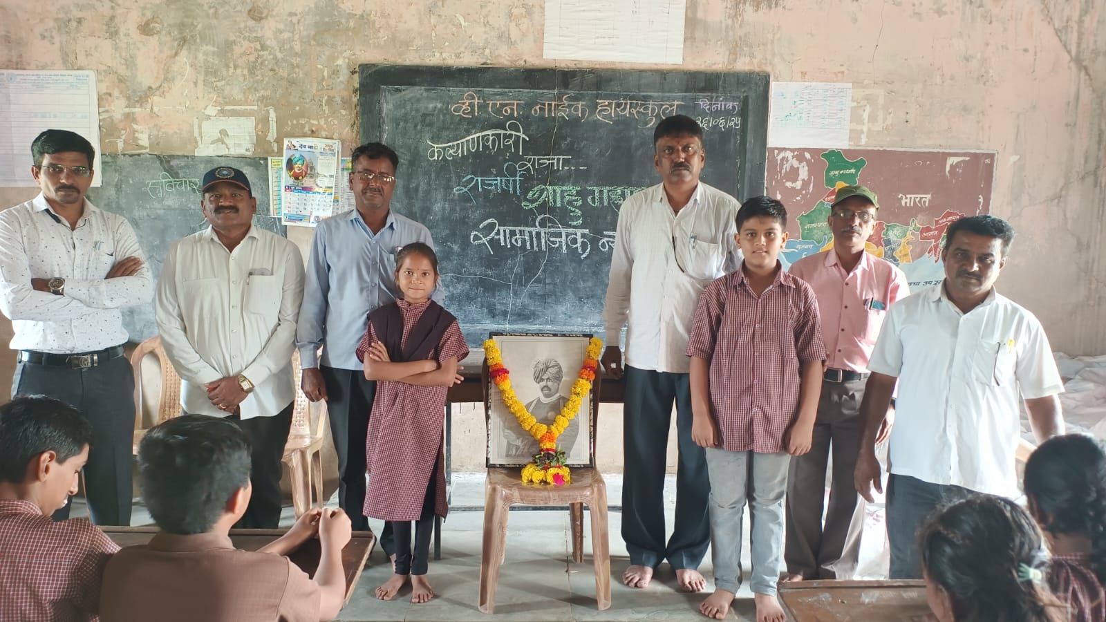 छत्रपती राजर्षी शाहू महाराज यांची जयंती साजरी करण्यात आली. मुख्याध्यापक सुनिल नाईक तसेच ज्येष्ठ शिक्षक हेमंत कातकडे, दिपक गायकवाड, संजय पवार, निंबा पवार, गिरीश दारुन्टे संजय कदम, नंदू सांगळे उपस्थित होते.