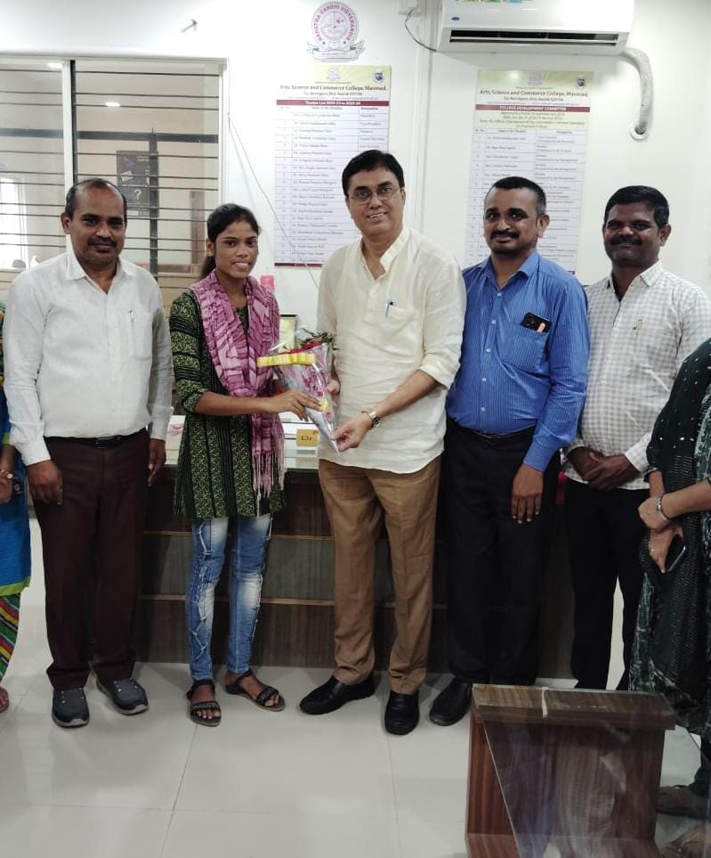 महात्मा गांधी विद्यामंदिर संचालित कला, विज्ञान आणि वाणिज्य( स्वायत्त) महाविद्यालय, मनमाड येथील अर्थशास्त्र विभागातील विद्यार्थिनी कोमल साहेबराव अहिरे हिची वनरक्षक पदी नियुक्ती झाली. कोमल हिने अतिशय खडतर परिस्थिती मध्ये शिक्षण घेऊन या यशाला गवसणी घातली . या यशामुळे महाविद्यालयात आणि परिसरात कौतुकाचे वातावरण आहे. महाविद्यालयाचे मा. प्राचार्य डॉ. अरुण विठ्ठल पाटील, यांनी विशेष सत्कार व हार्दिक अभिनंदन केले असून तिला भावी आयुष्यासाठी शुभेच्छा दिल्या. याप्रसंगी उपप्राचार्य डॉ. बी. एस. देसले, शैक्षणिक पर्यवेक्षक प्रा. डी. व्हि. सोनवणे, अर्थशास्त्र विभाग प्रमुख डॉ.जी.एल.शेंडगे, डॉ.सुनील घुगे, डॉ.पंढरीनाथ दिसागज उपस्थित होते.
