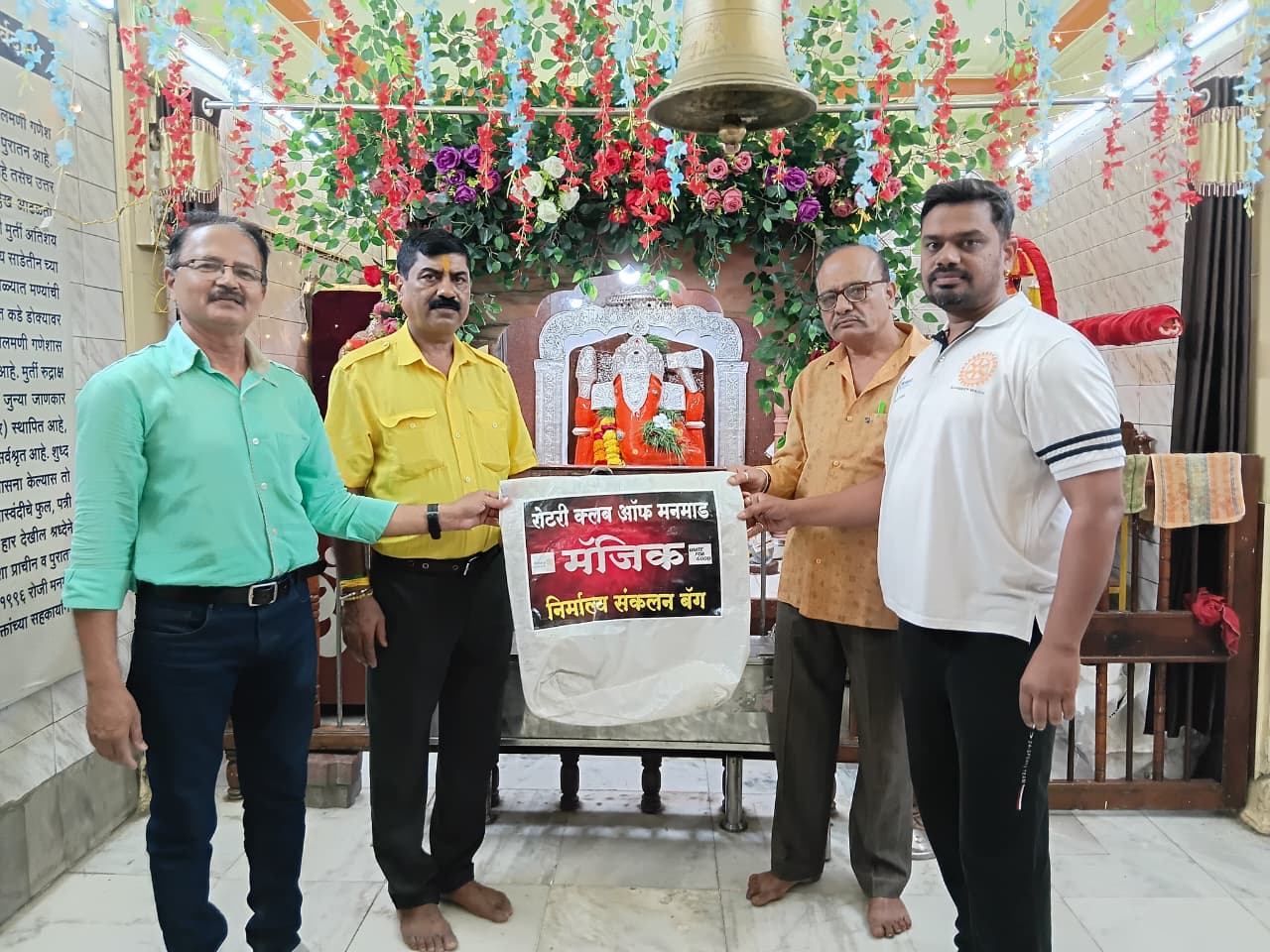 रोटरी क्लब ऑफ मनमाड मॅजिक तर्फे गणपती मंडळांना निर्माल्य संकलन बॅग वाटप